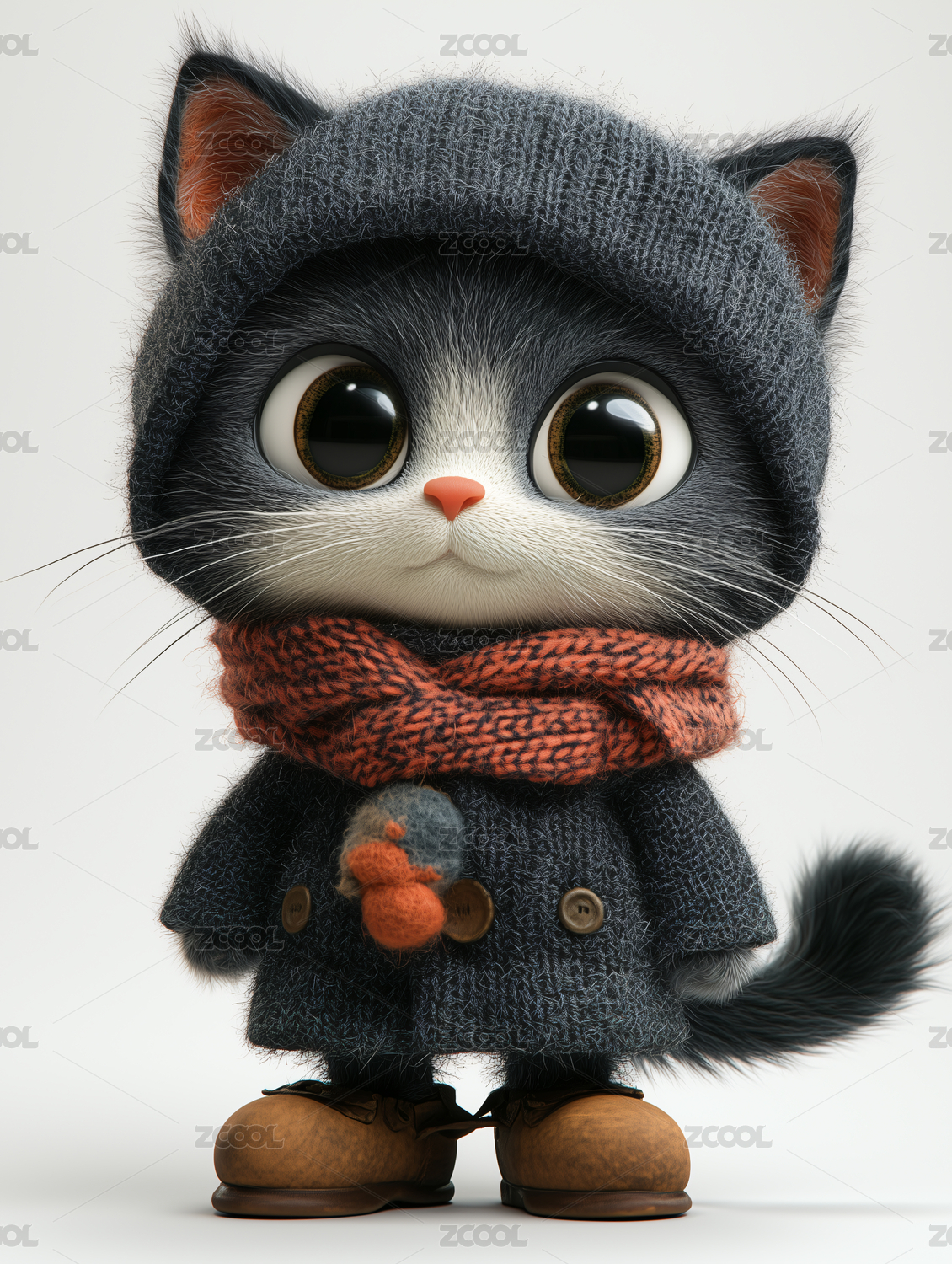 卡通呆萌大眼睛的小猫玩具公仔插画