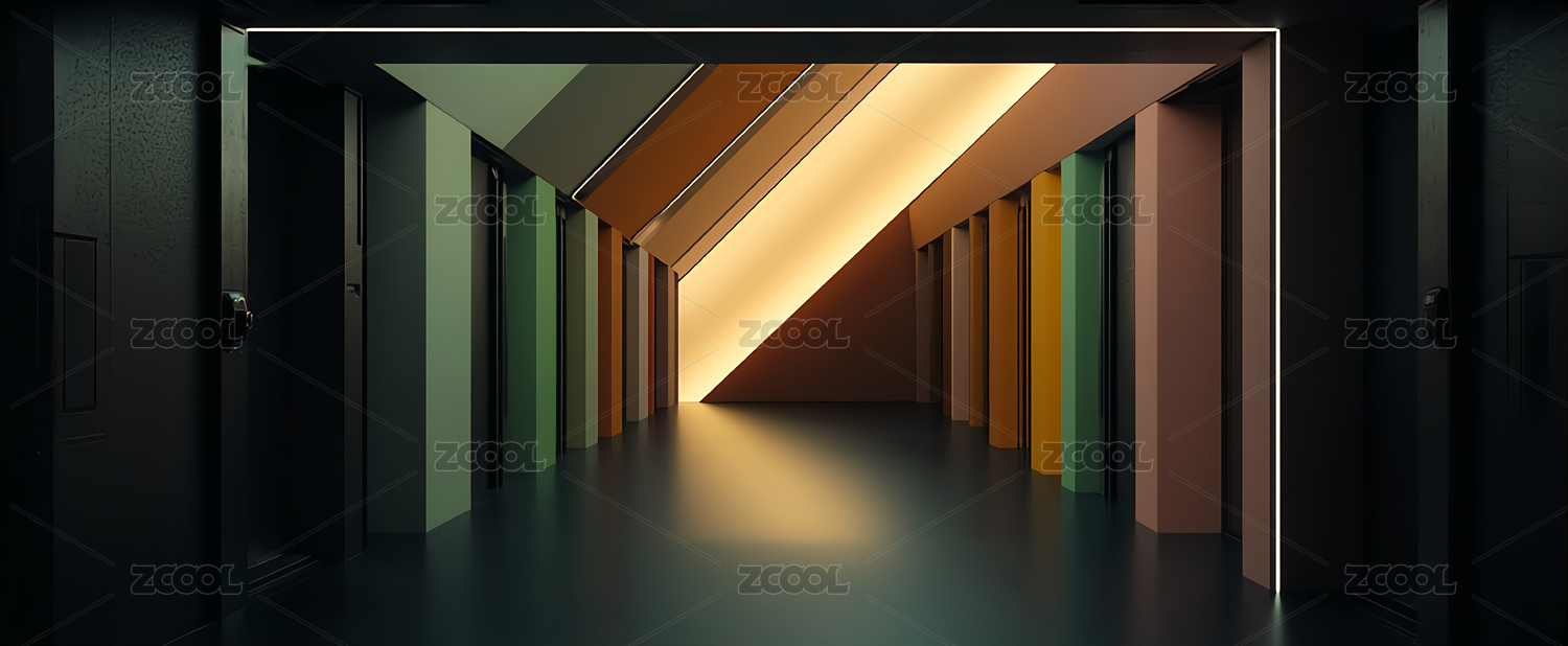 极简,现代,抽象,几何体,建筑,走廊,背景,三维,场景,灯光