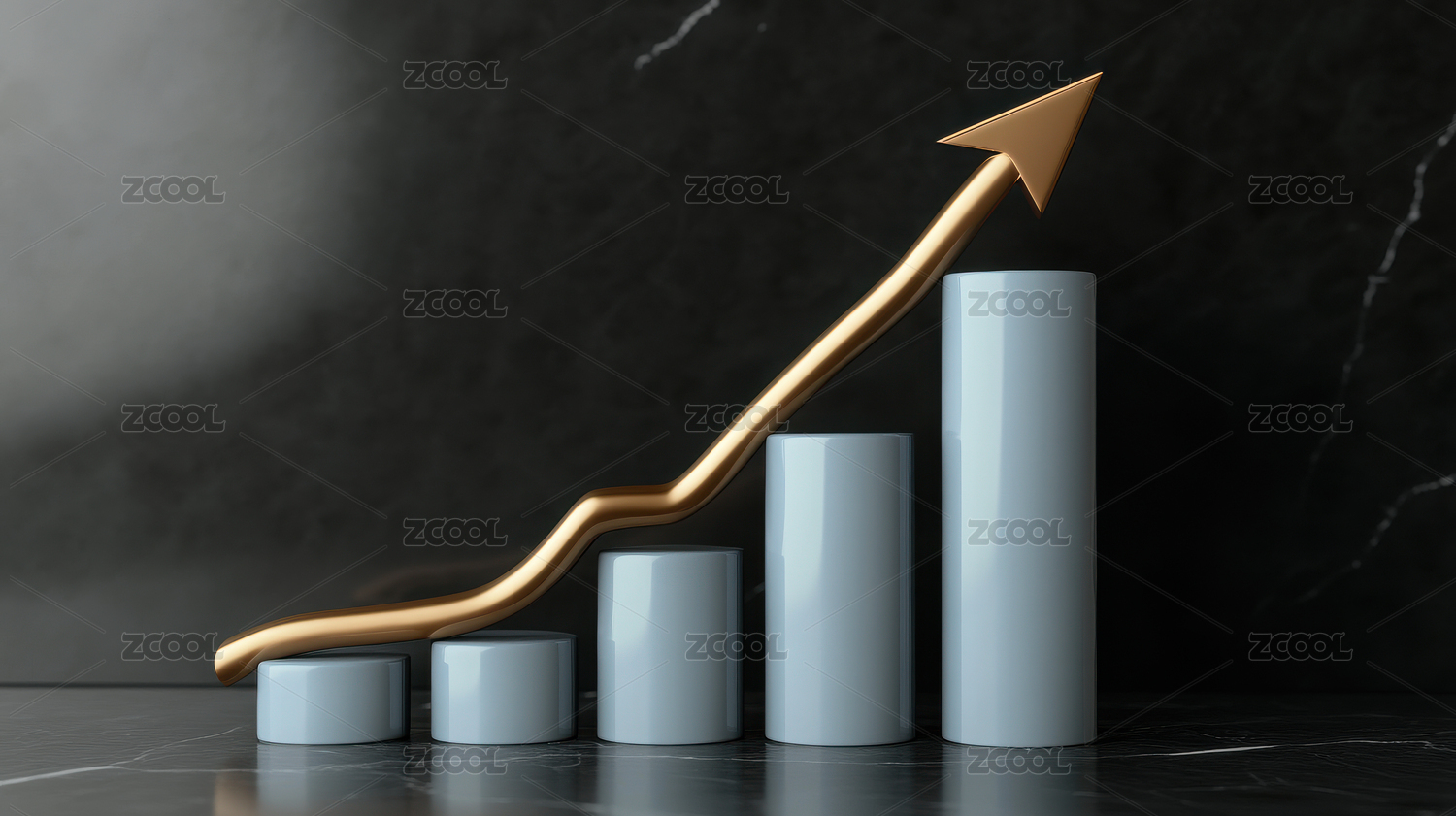 柱状图与上扬箭头展现增长态势