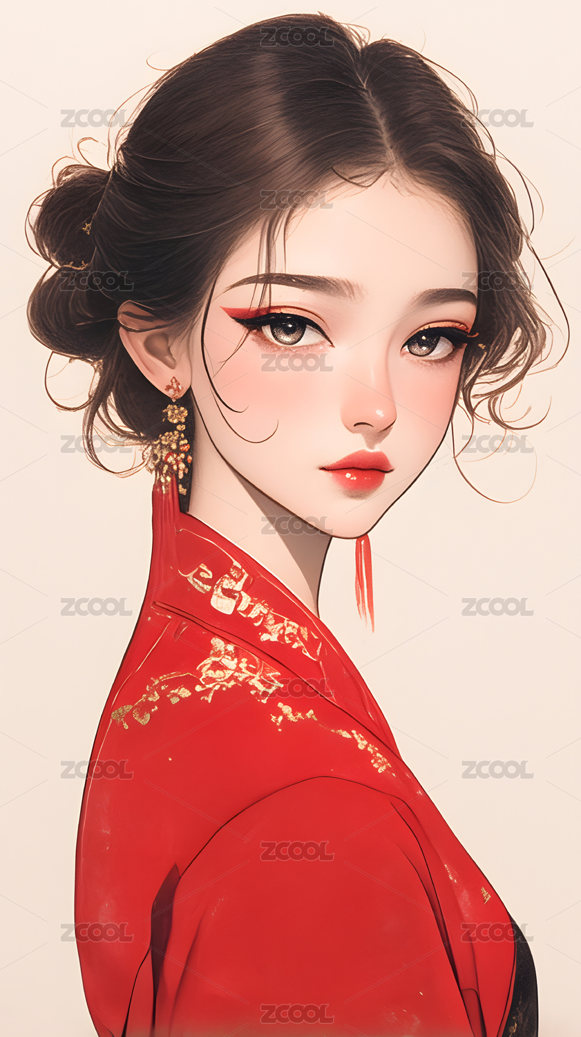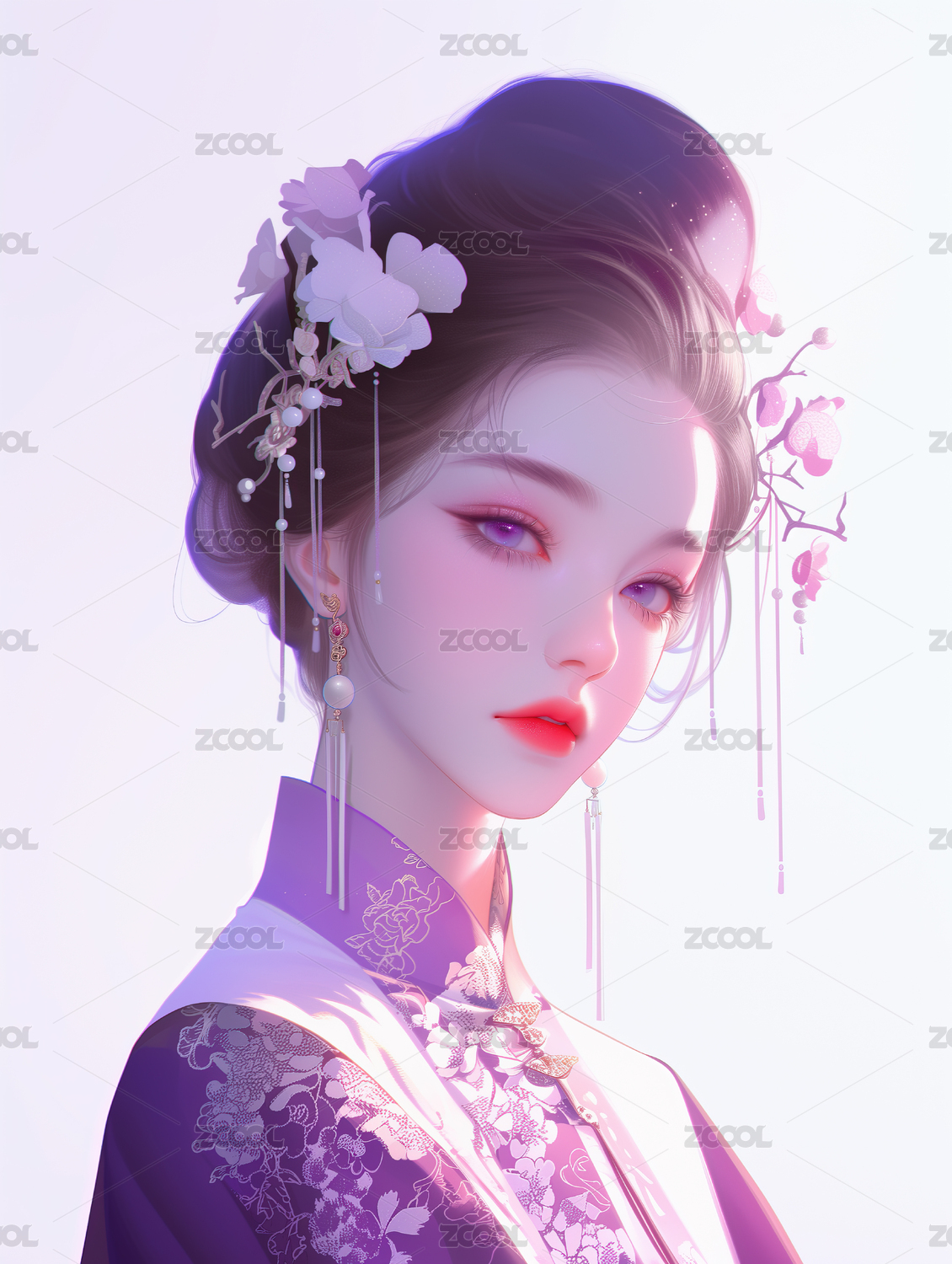 插画,花朵,发饰,背景,艺术,柔美,长发,细节,服饰,传统