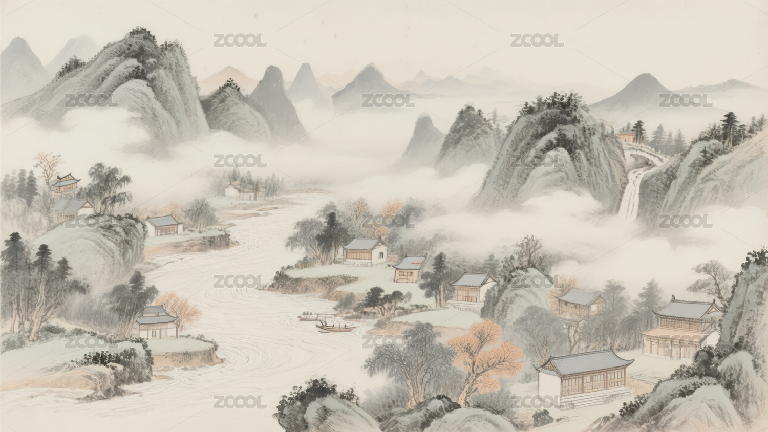 商业,壁纸,场景,背景,主视觉,装饰,设计,山水,古建,中式