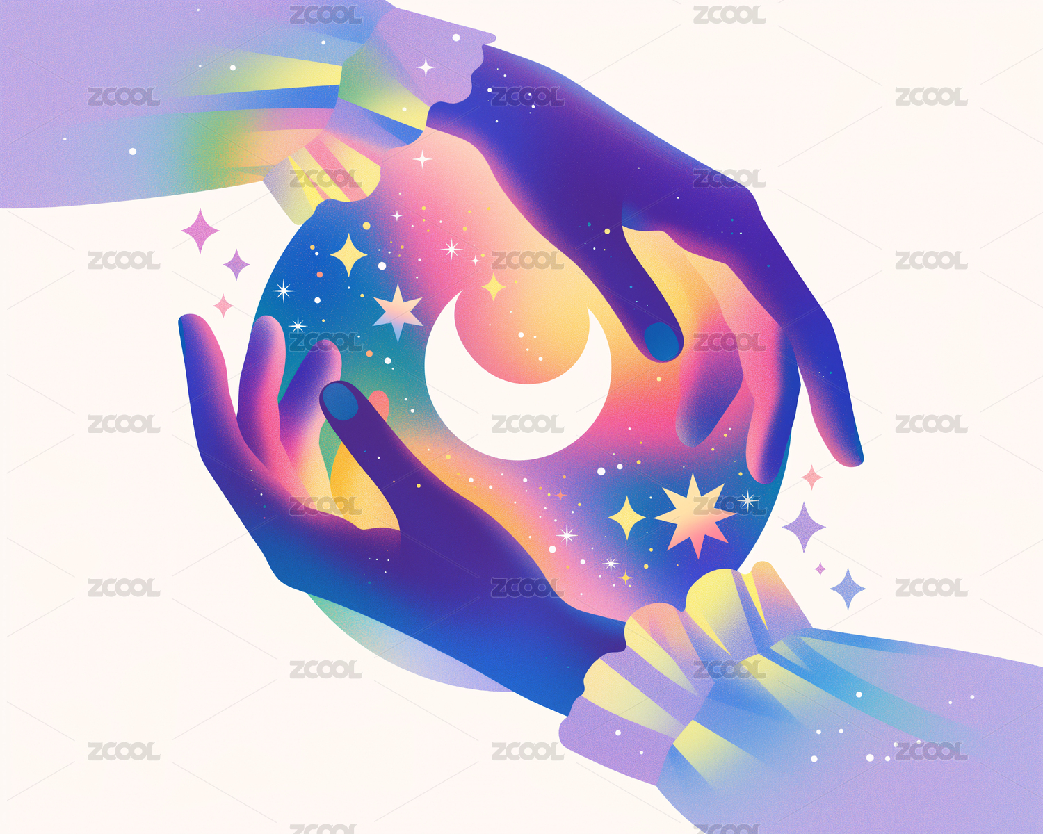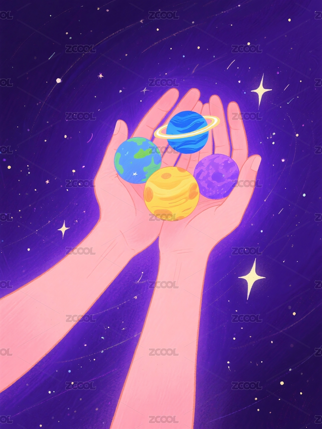 黄色,明亮,景象,手掌,行星,宇宙,星空,紫色,蓝色,星球