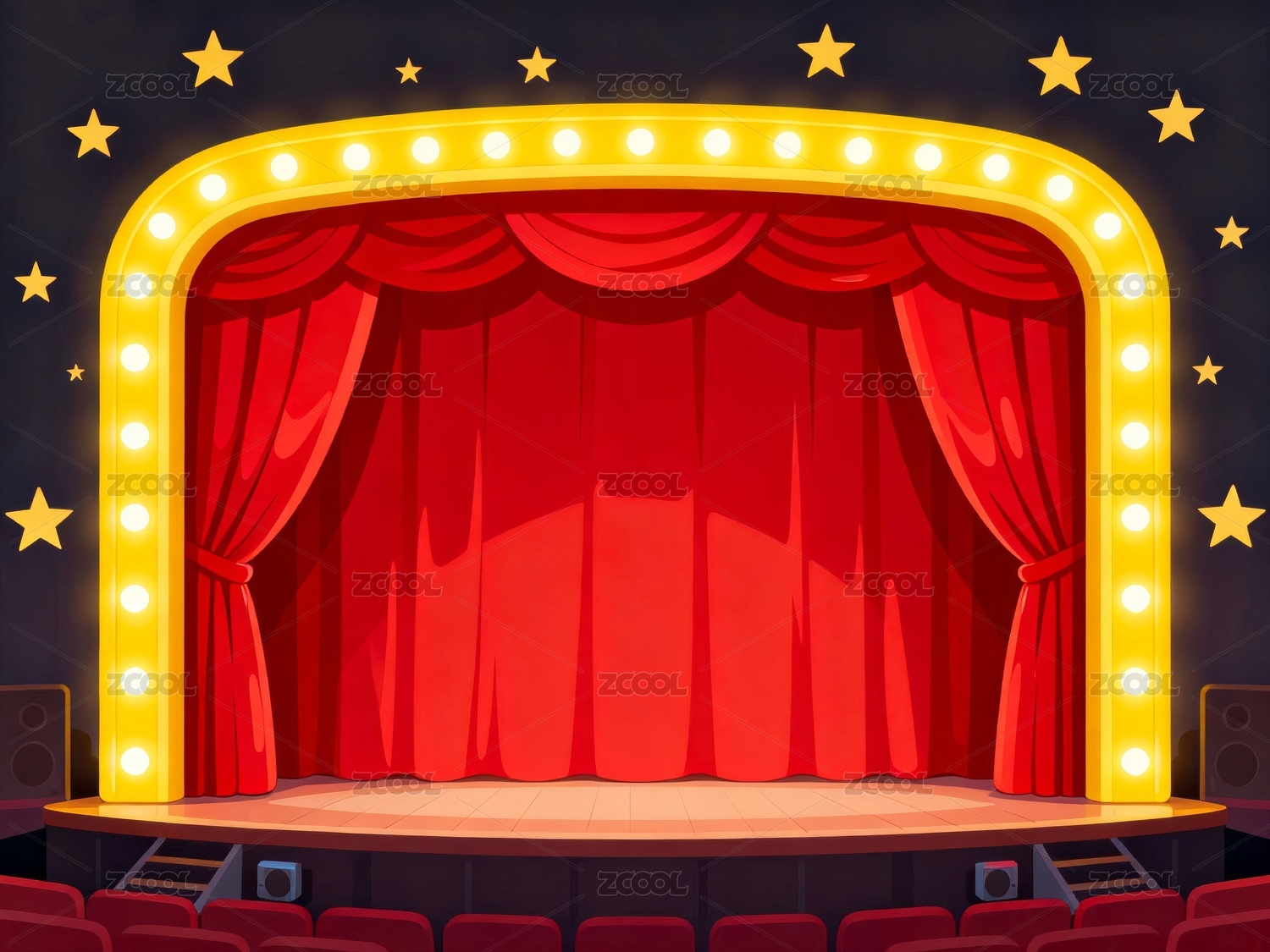 红色幕布与舞台灯光