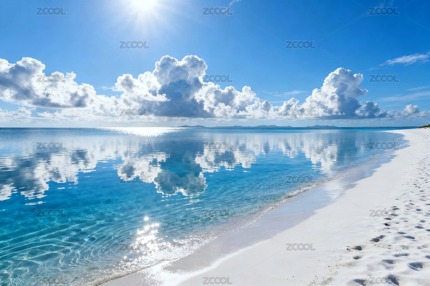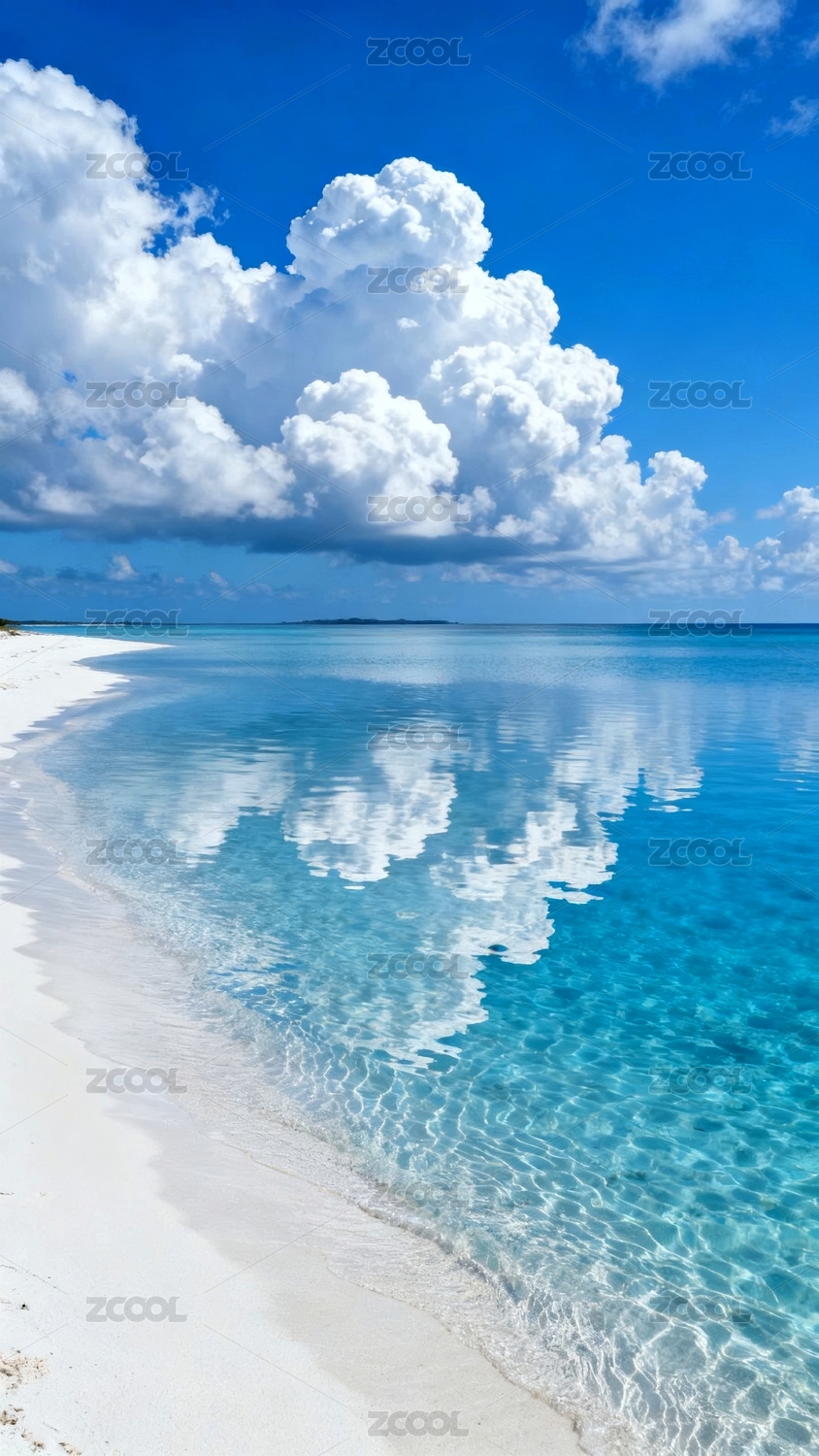 碧海蓝天下的清澈海水与白色沙滩 美丽景象