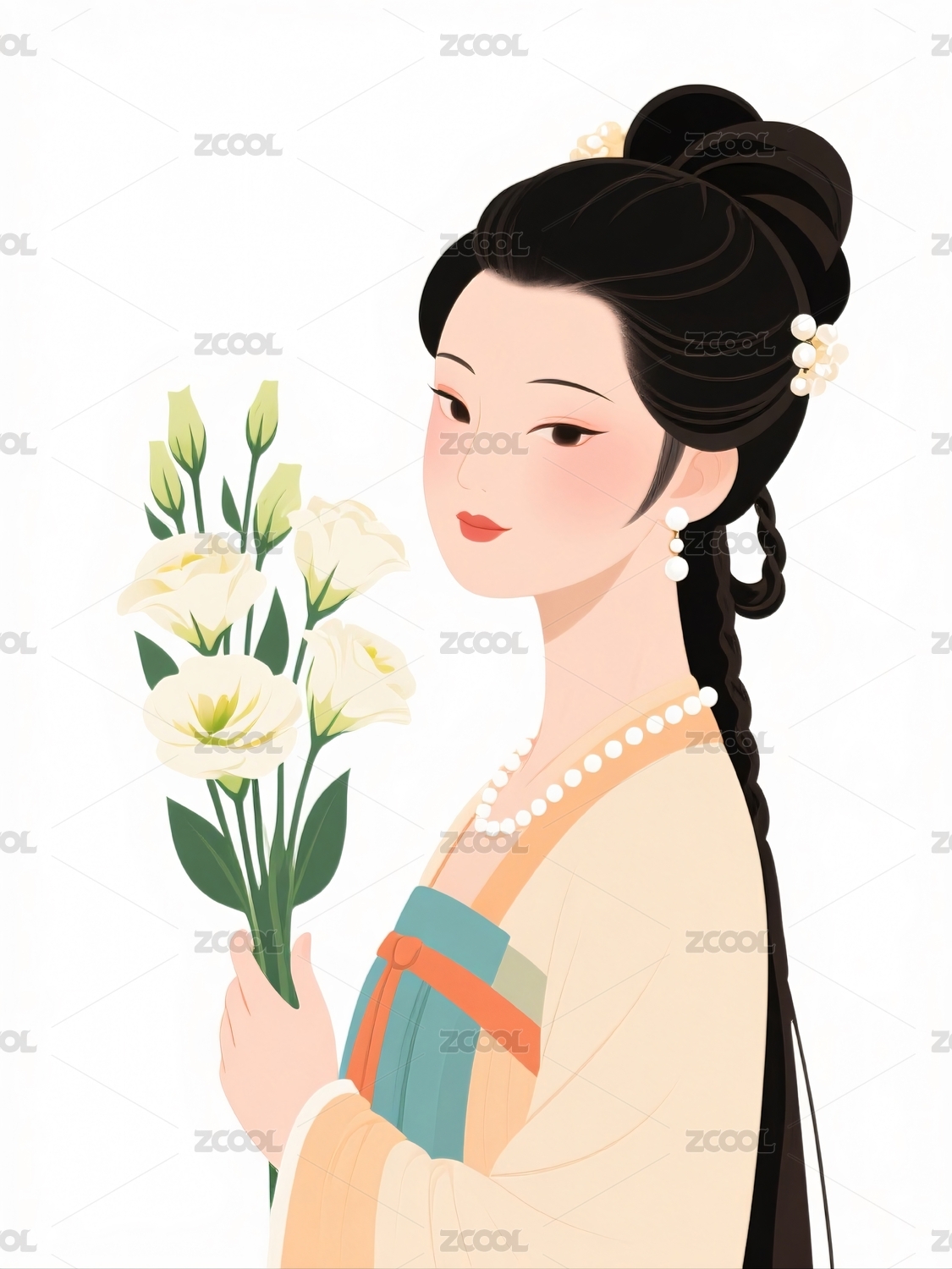 女子,长发,花朵,头发,手臂,鲜花,眼睛,珍珠,枝干,嘴唇