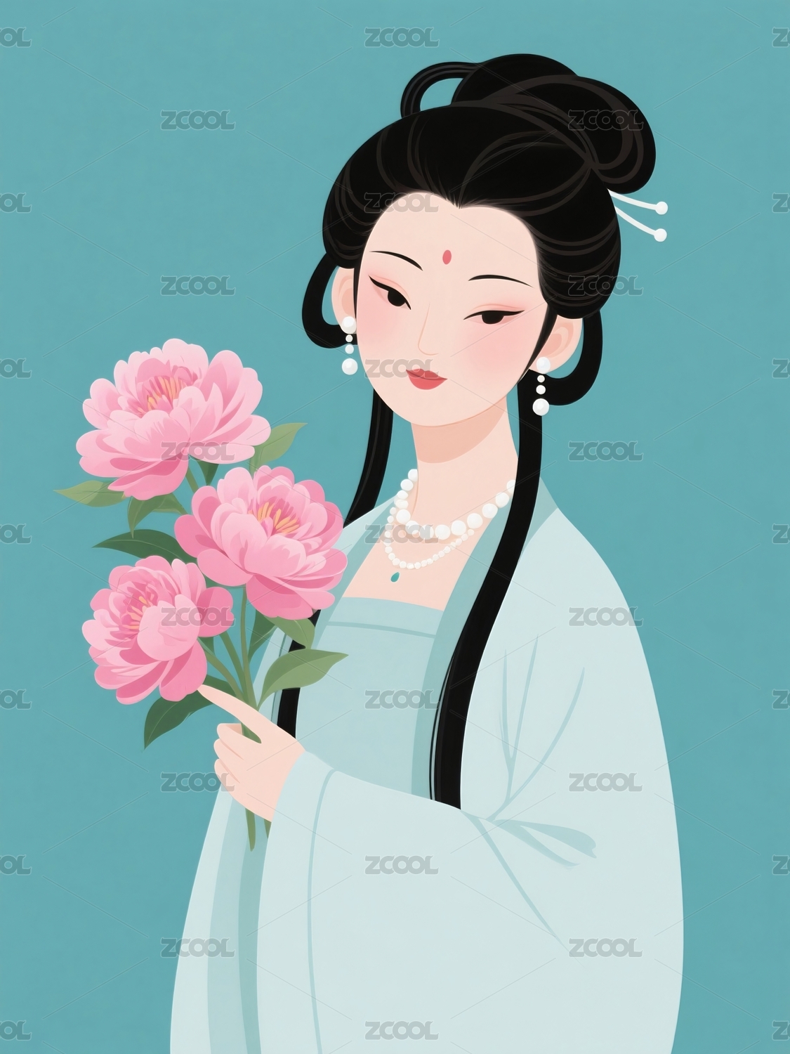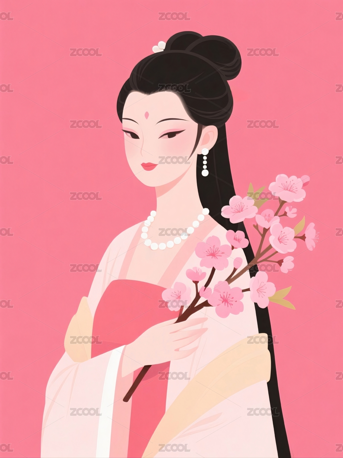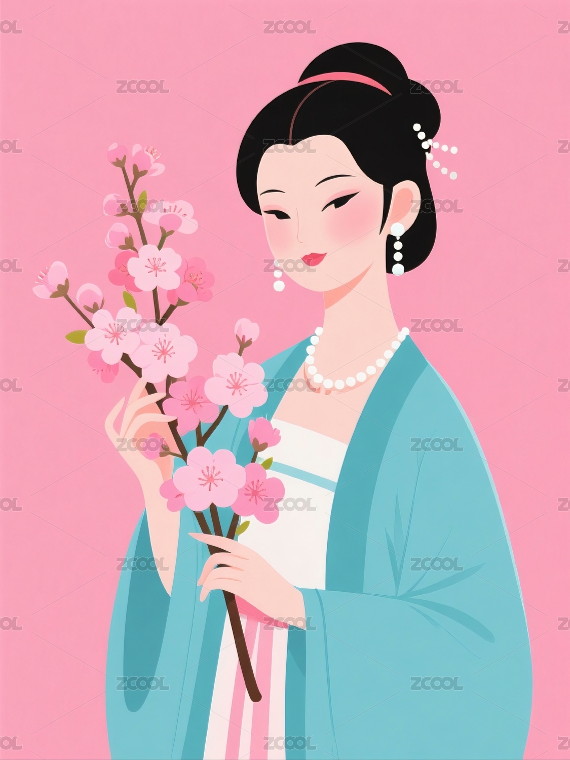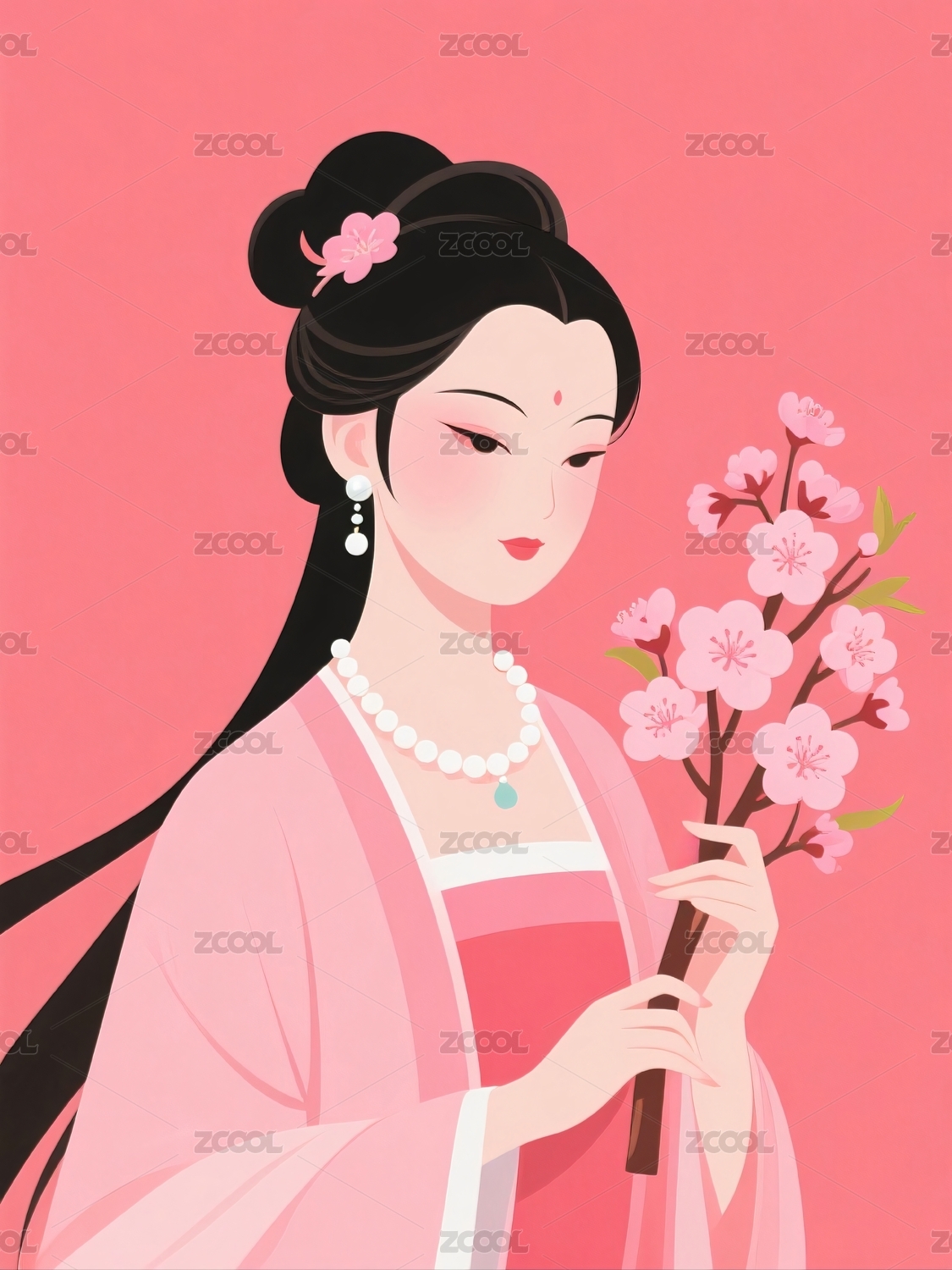 女子,长发,裙子,头发,手臂,美丽,鲜花,粉色,黑色,眼睛