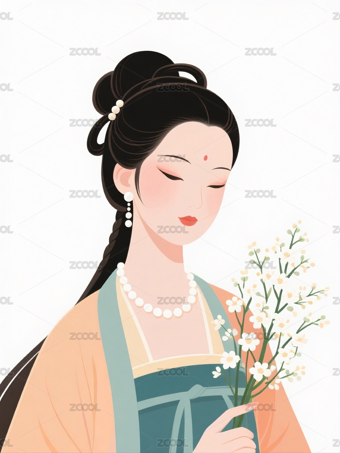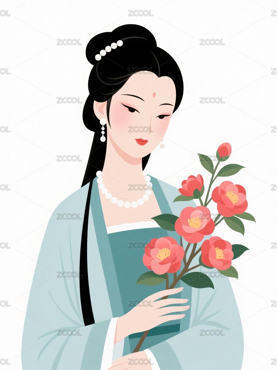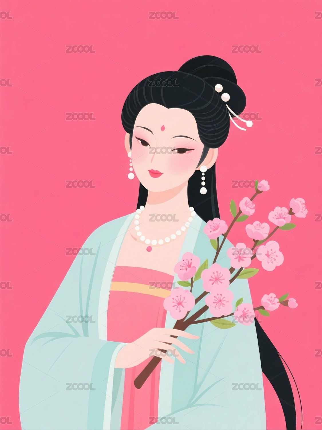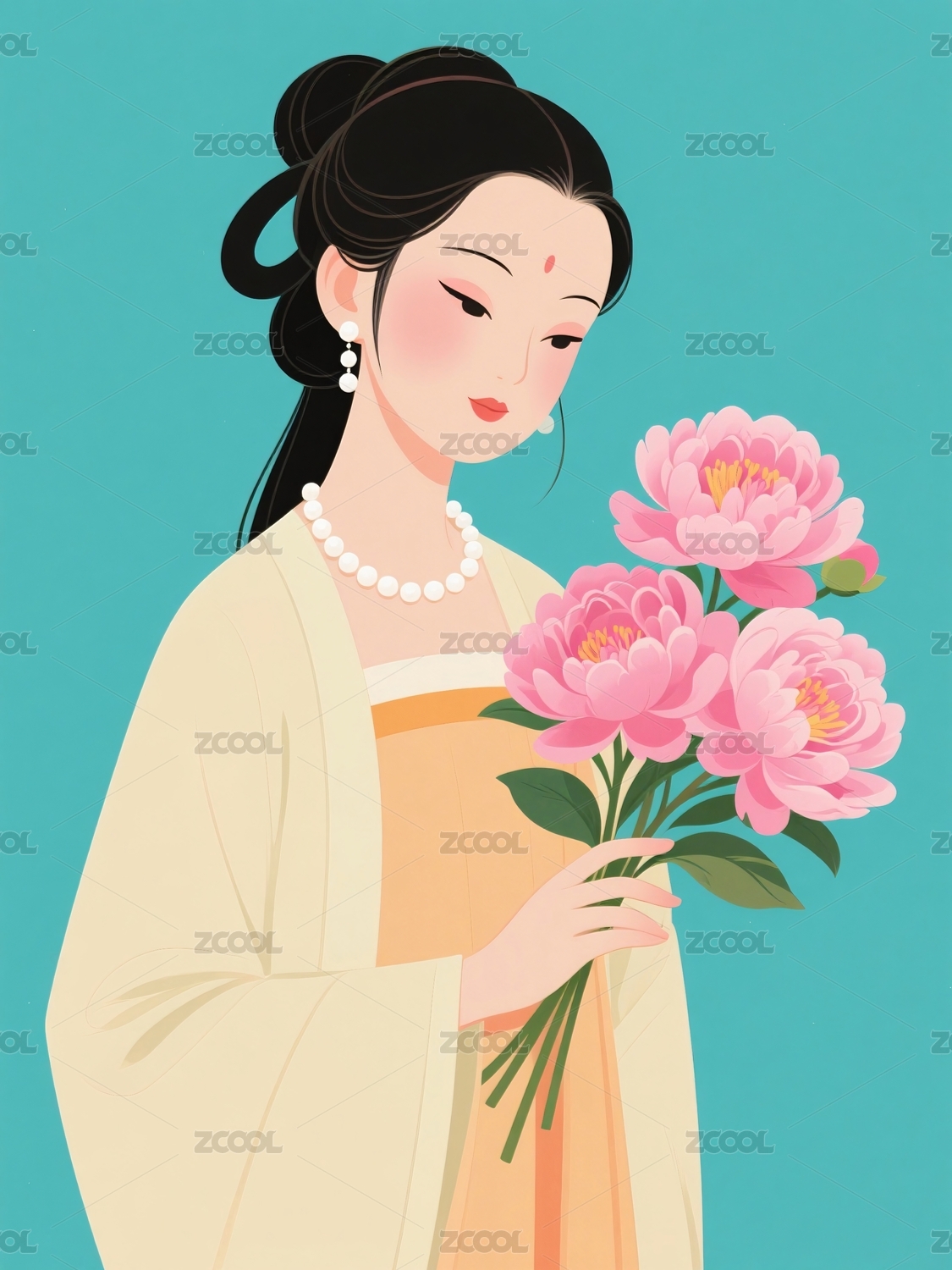女子,长发,裙子,头发,手臂,美丽,鲜花,粉色,黑色,眼睛