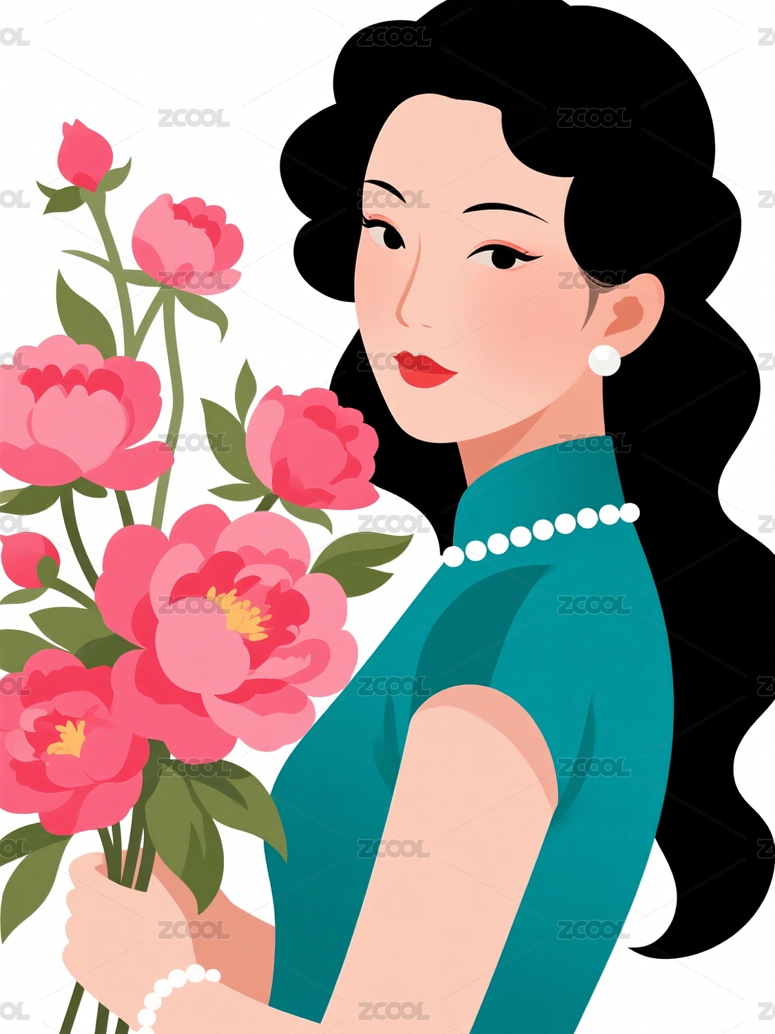 花朵,裙子,手臂,装饰,绿色,女子,旗袍,头发,珍珠,耳环
