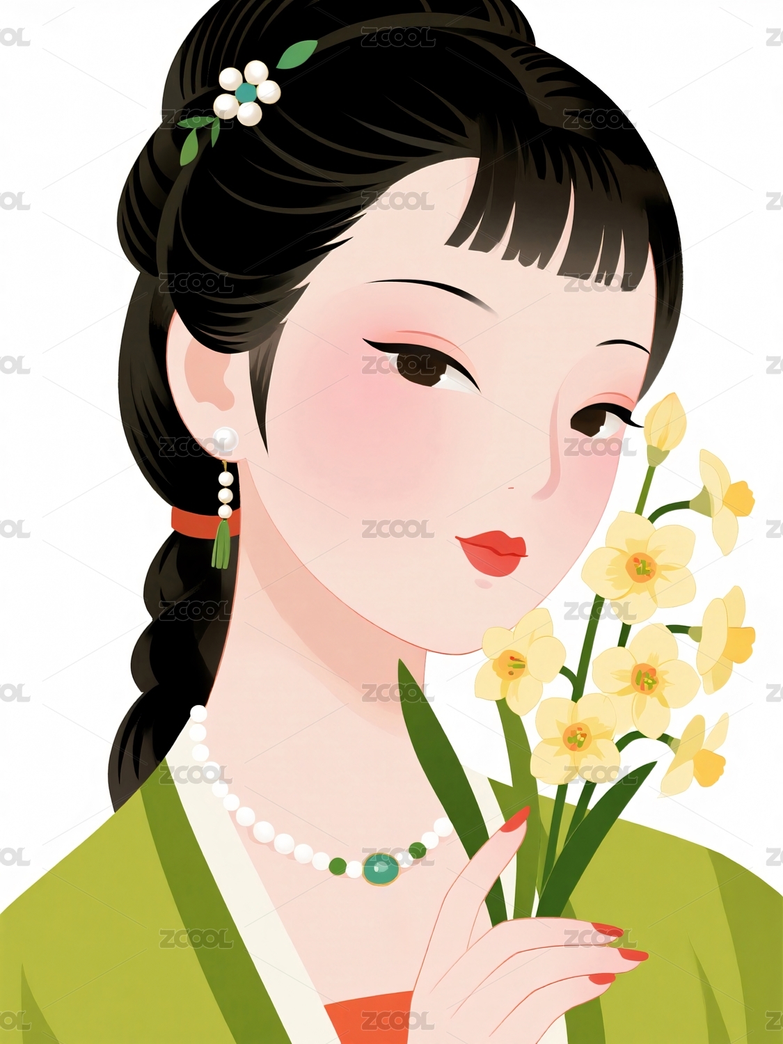 持花女子面容温柔秀丽