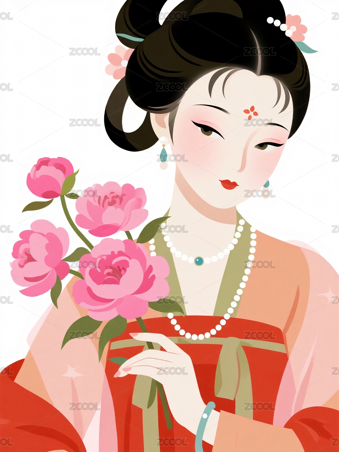 古装女子手持粉色牡丹花