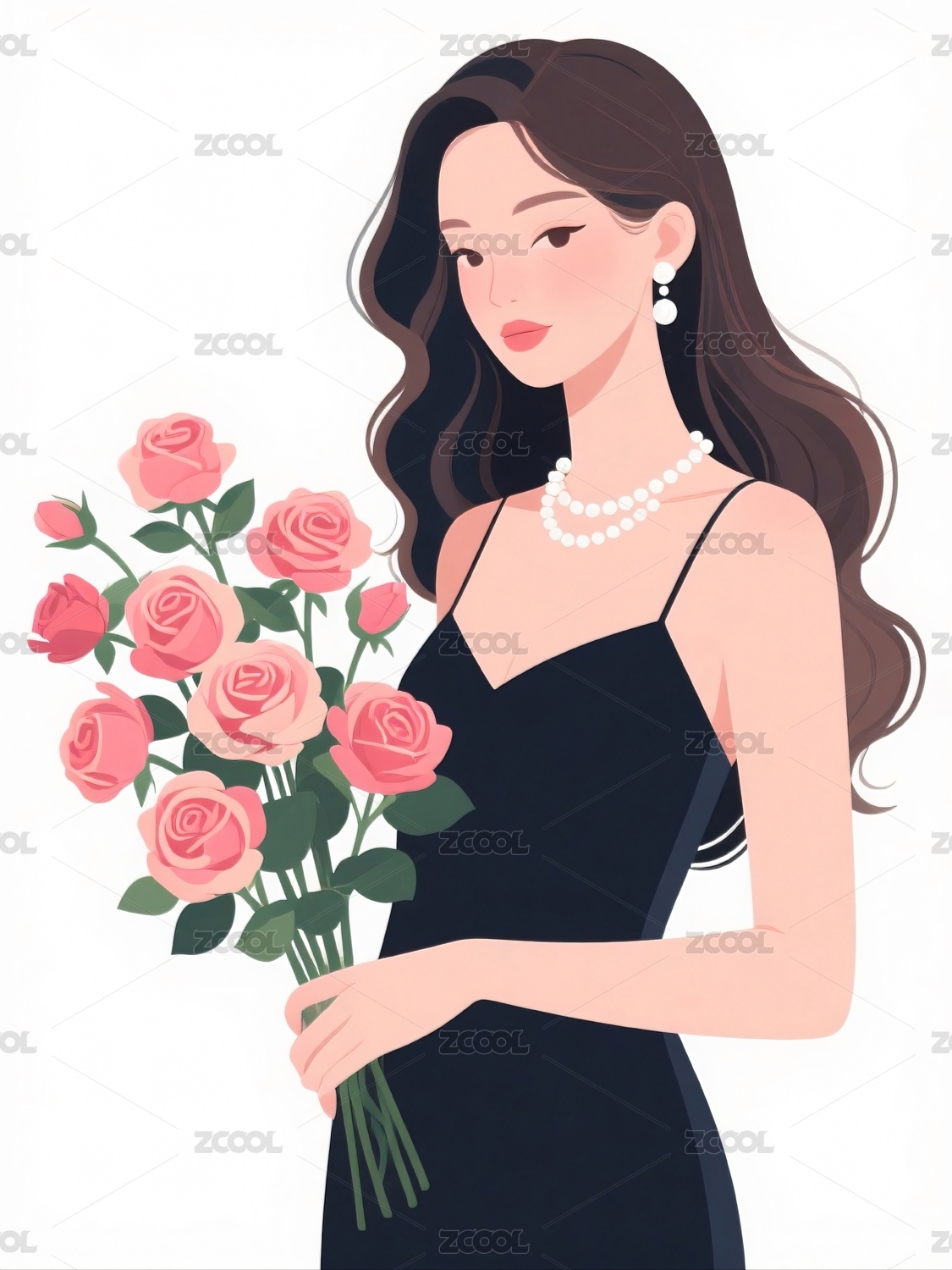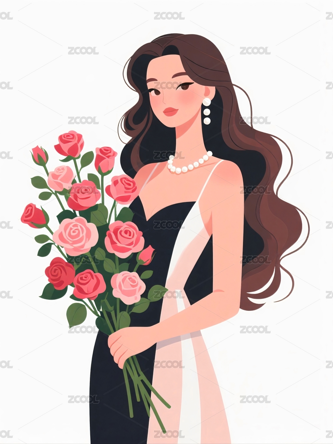 女子手捧玫瑰长裙礼服
