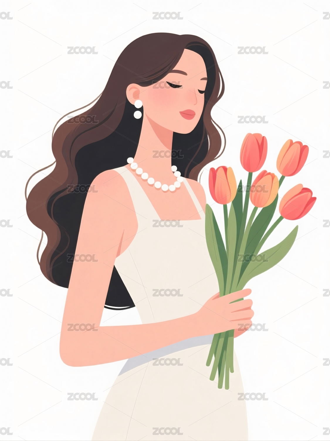 手捧鲜花身穿白裙的女子