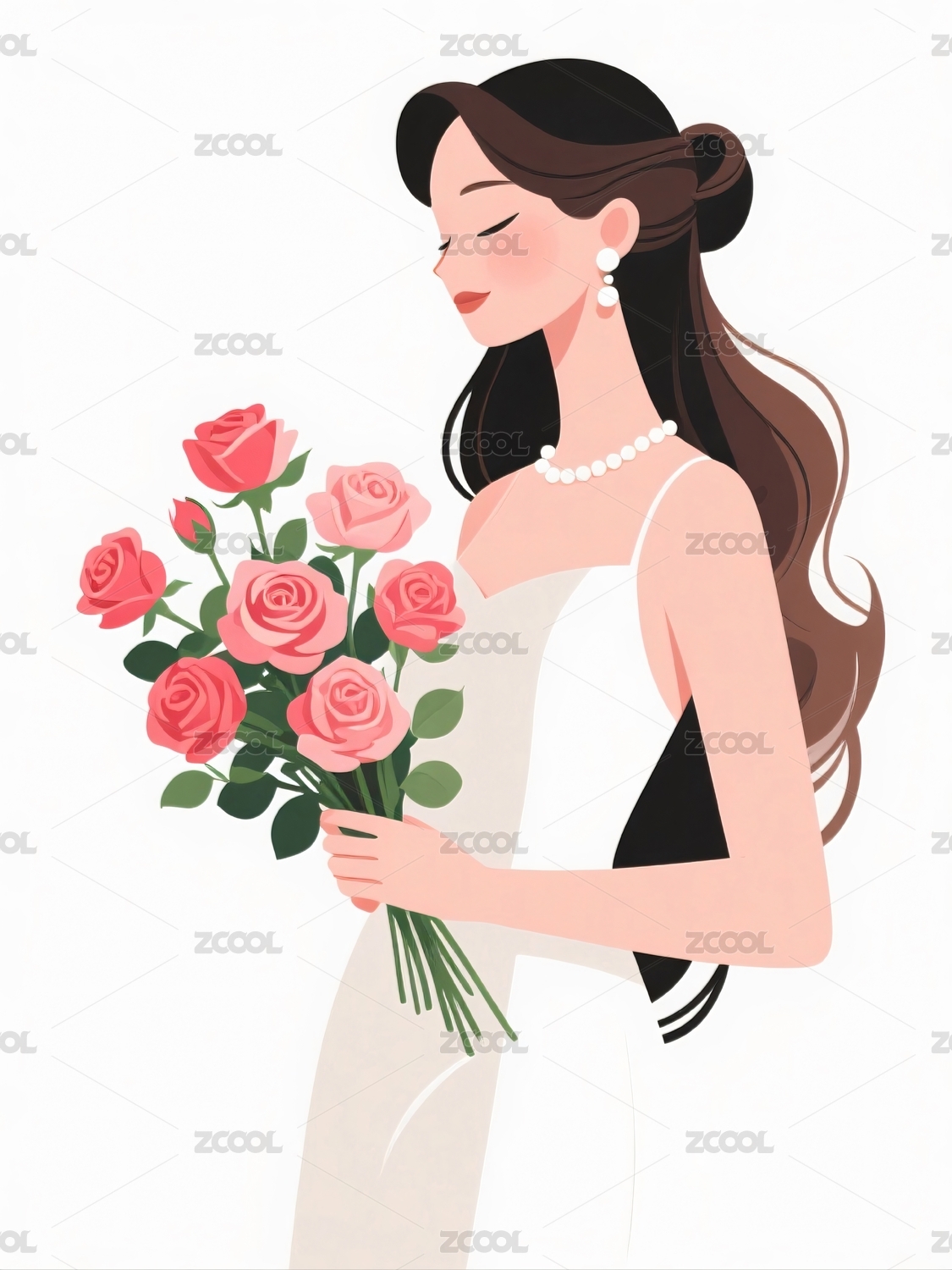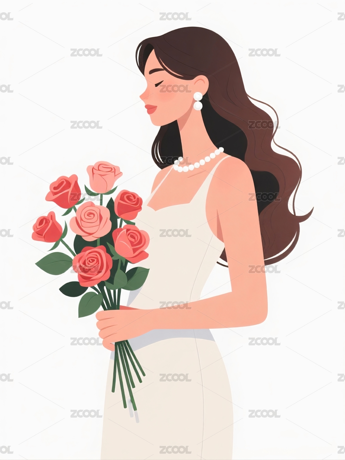 持花女子身着白色礼服