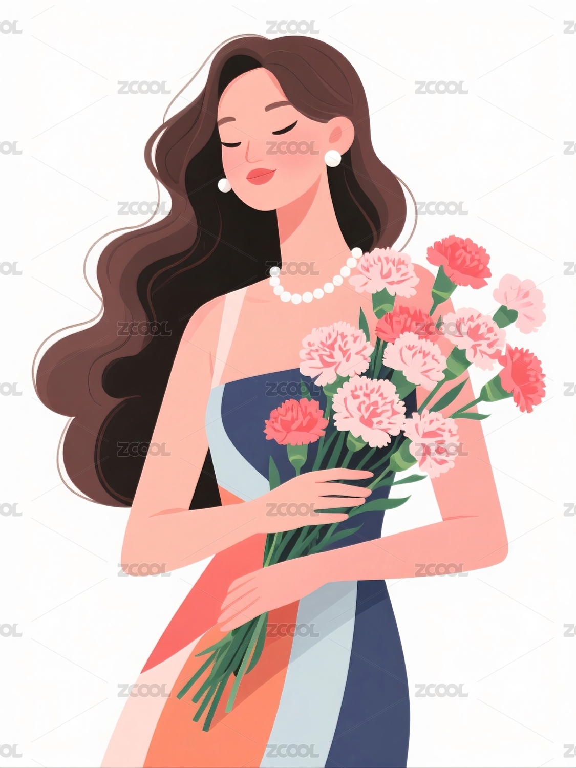 女子手捧鲜花站立肖像