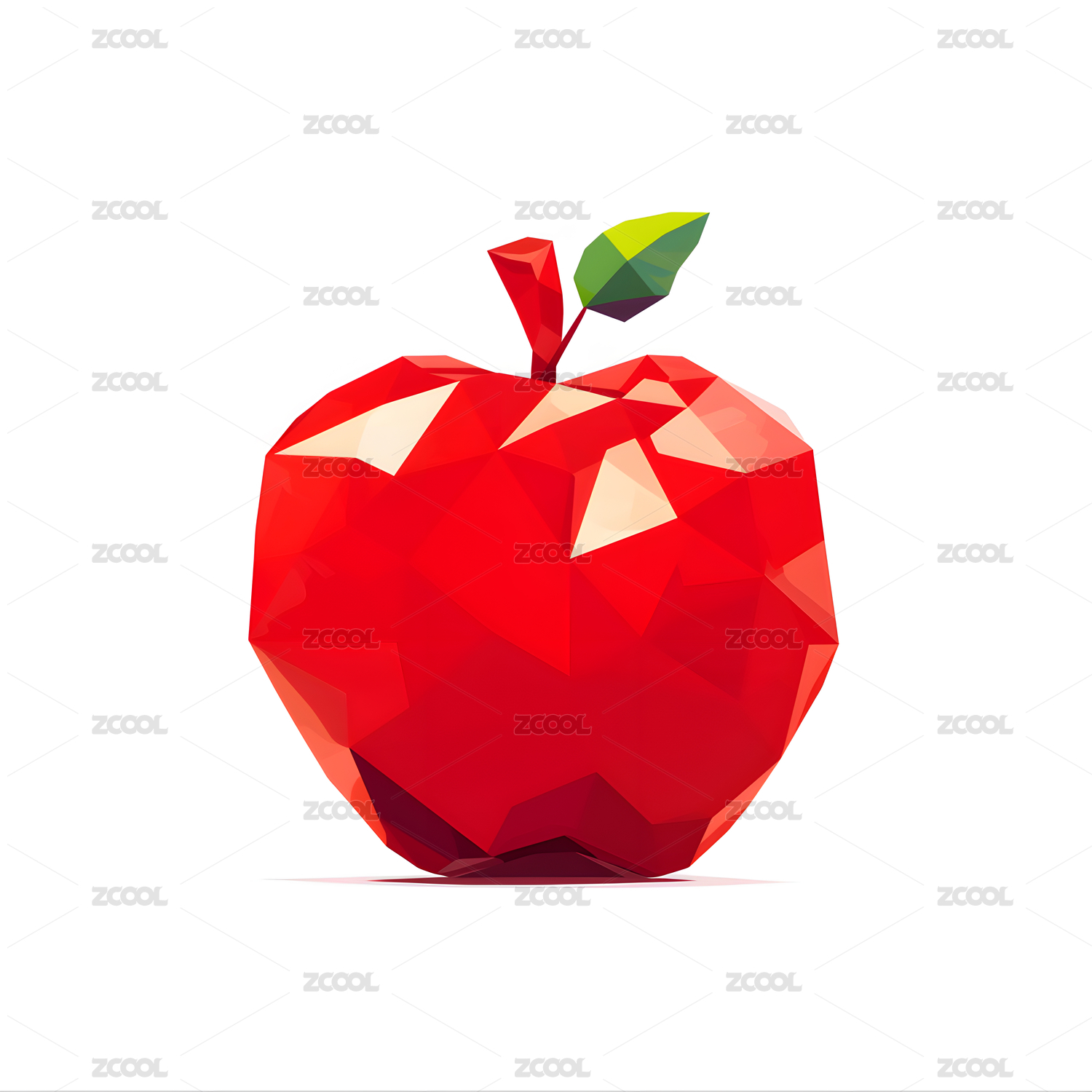 苹果,几何,红色,绿色,叶子,多边形,插画,艺术,风格