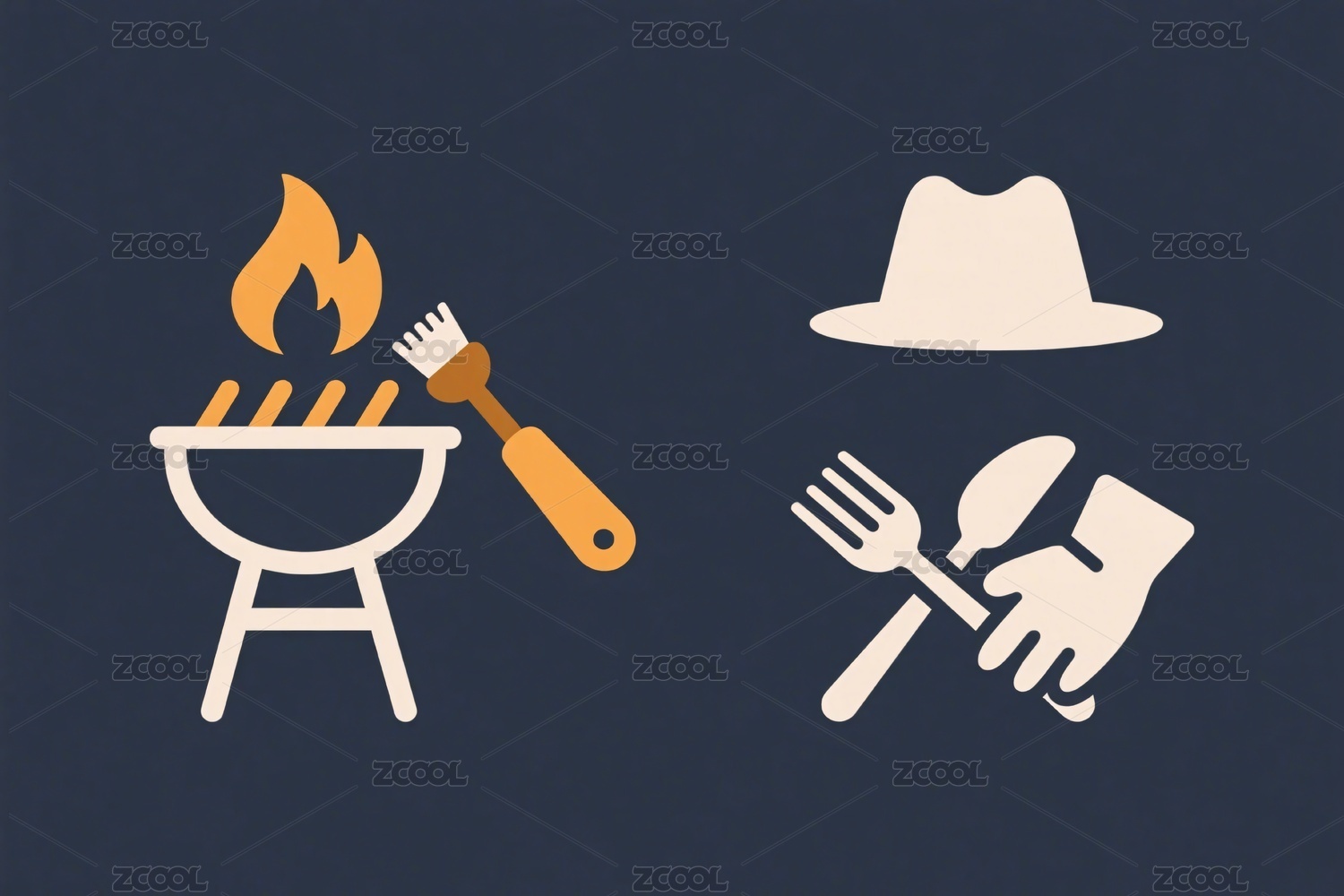 帽子,火焰,烤架,铲子,餐具,勺子,叉子,插画,图标,简约
