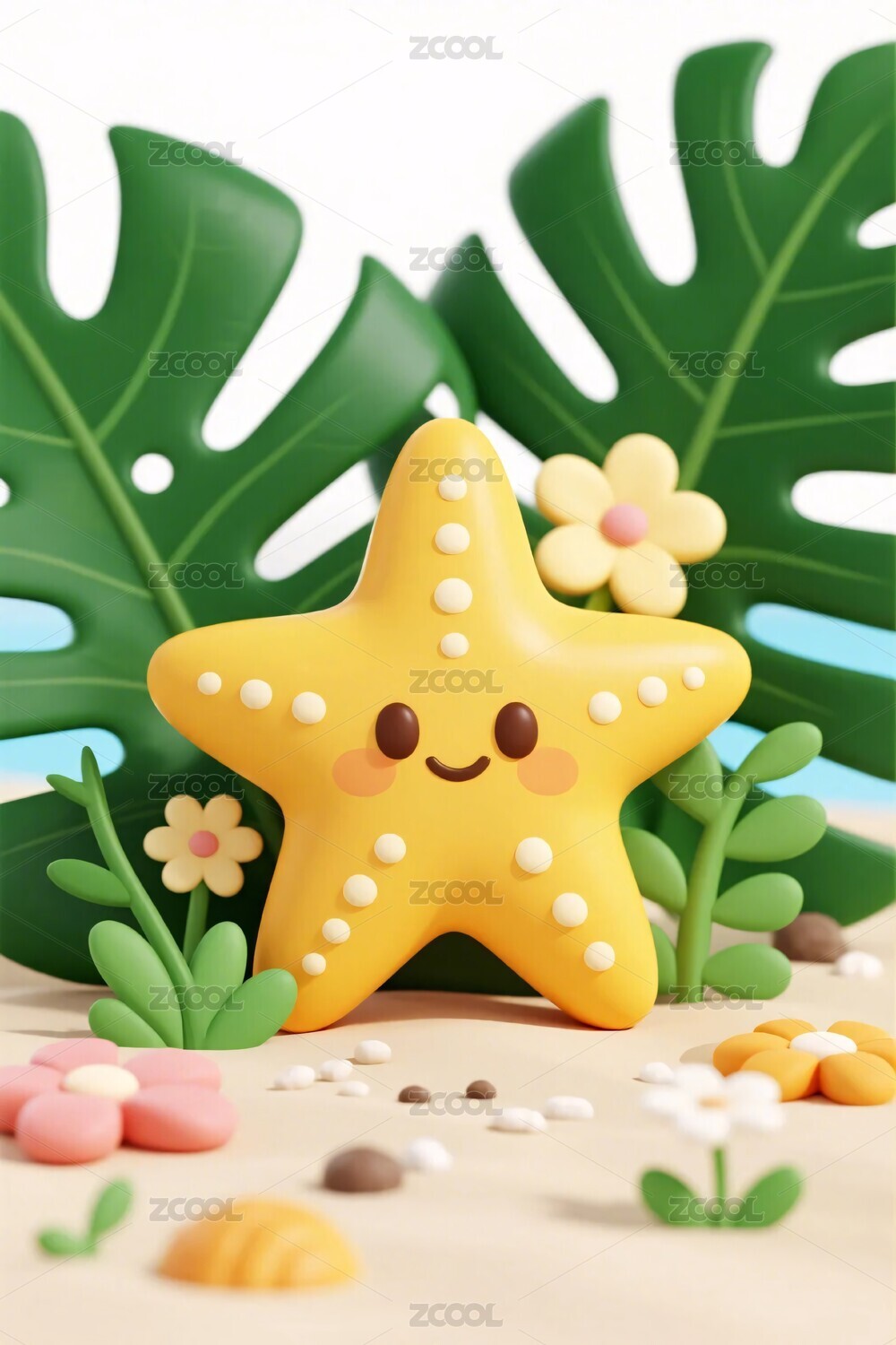 卡通海星沙滩场景