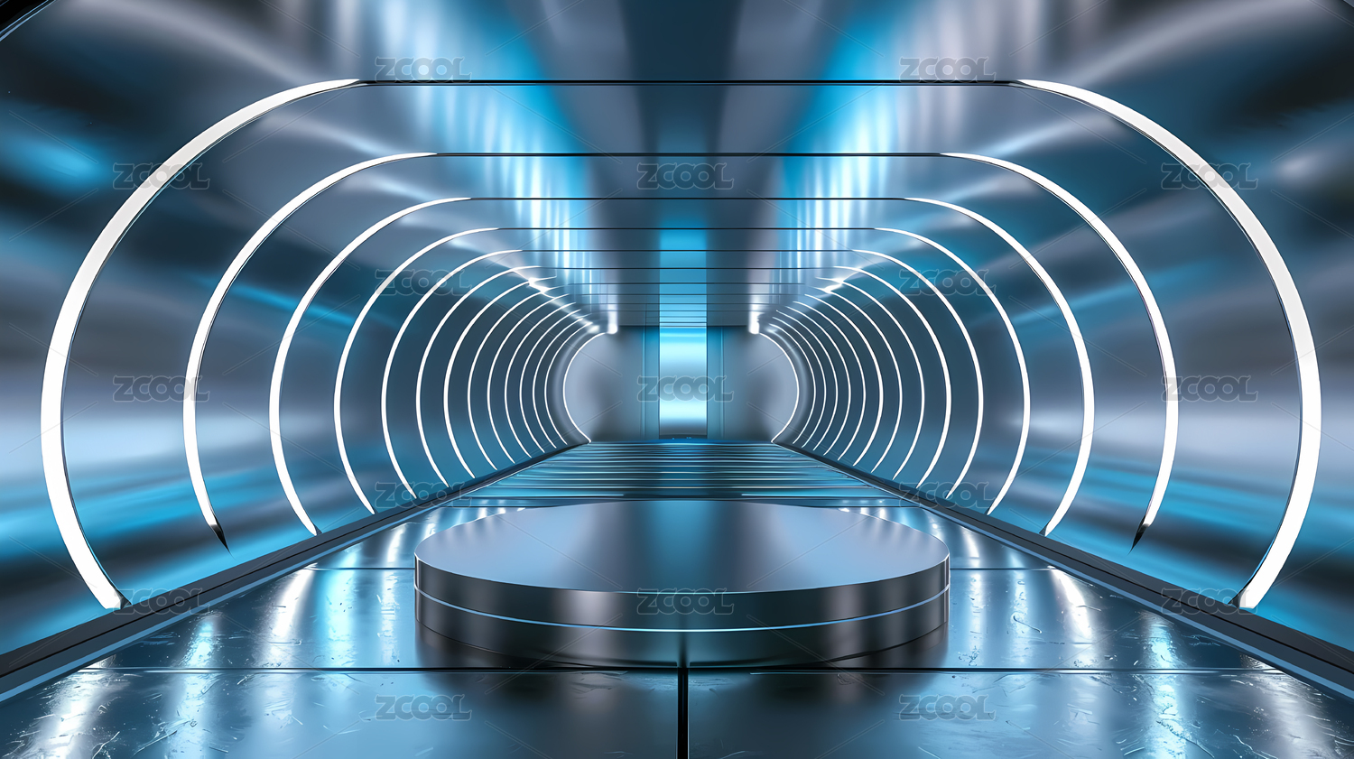 蓝色,银色,科技,未来,发光,圆形,深蓝,空间,平台,拱形