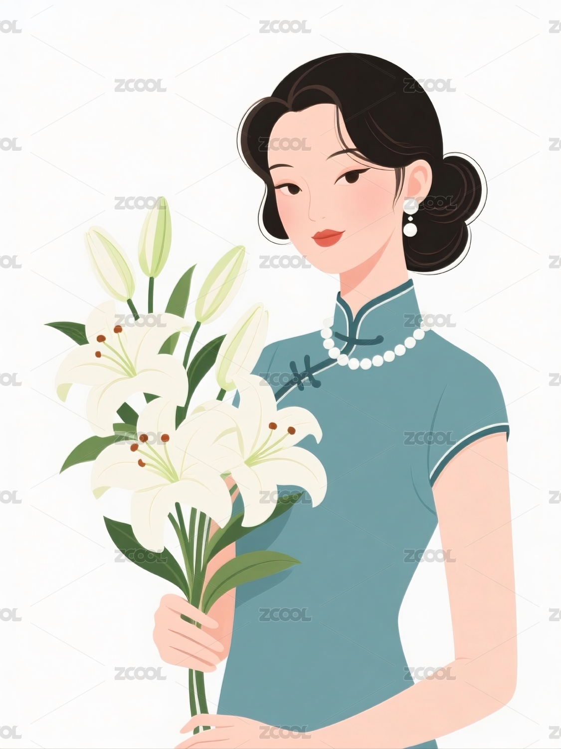 女子,绿色,头发,手臂,美丽,鲜花,粉色,珍珠,枝干,嘴唇