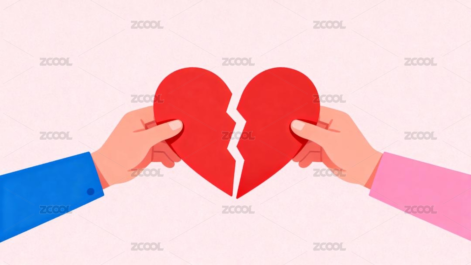 两个人手拿着破裂的心象征着分手分开离婚婚姻爱情破碎概念