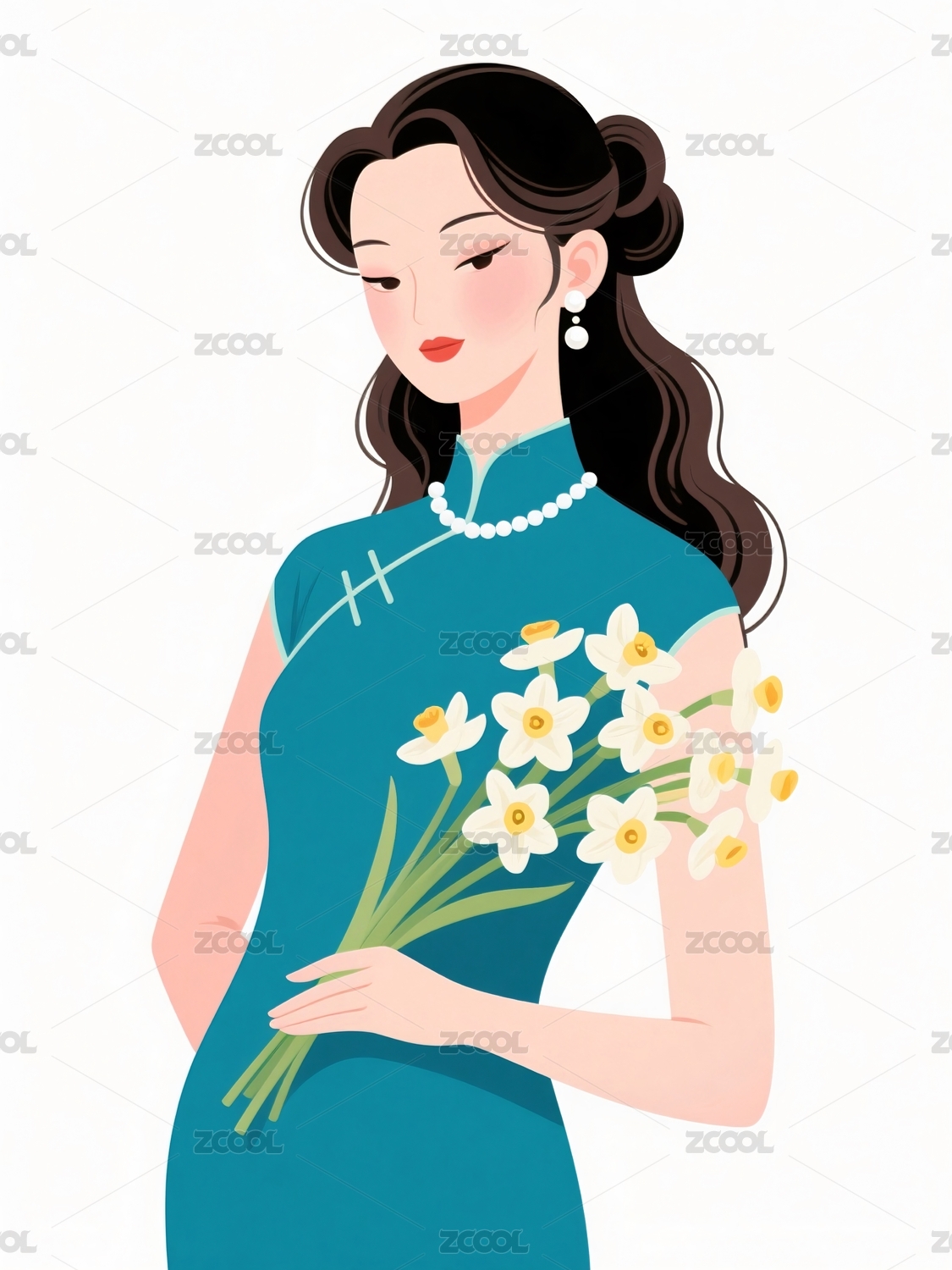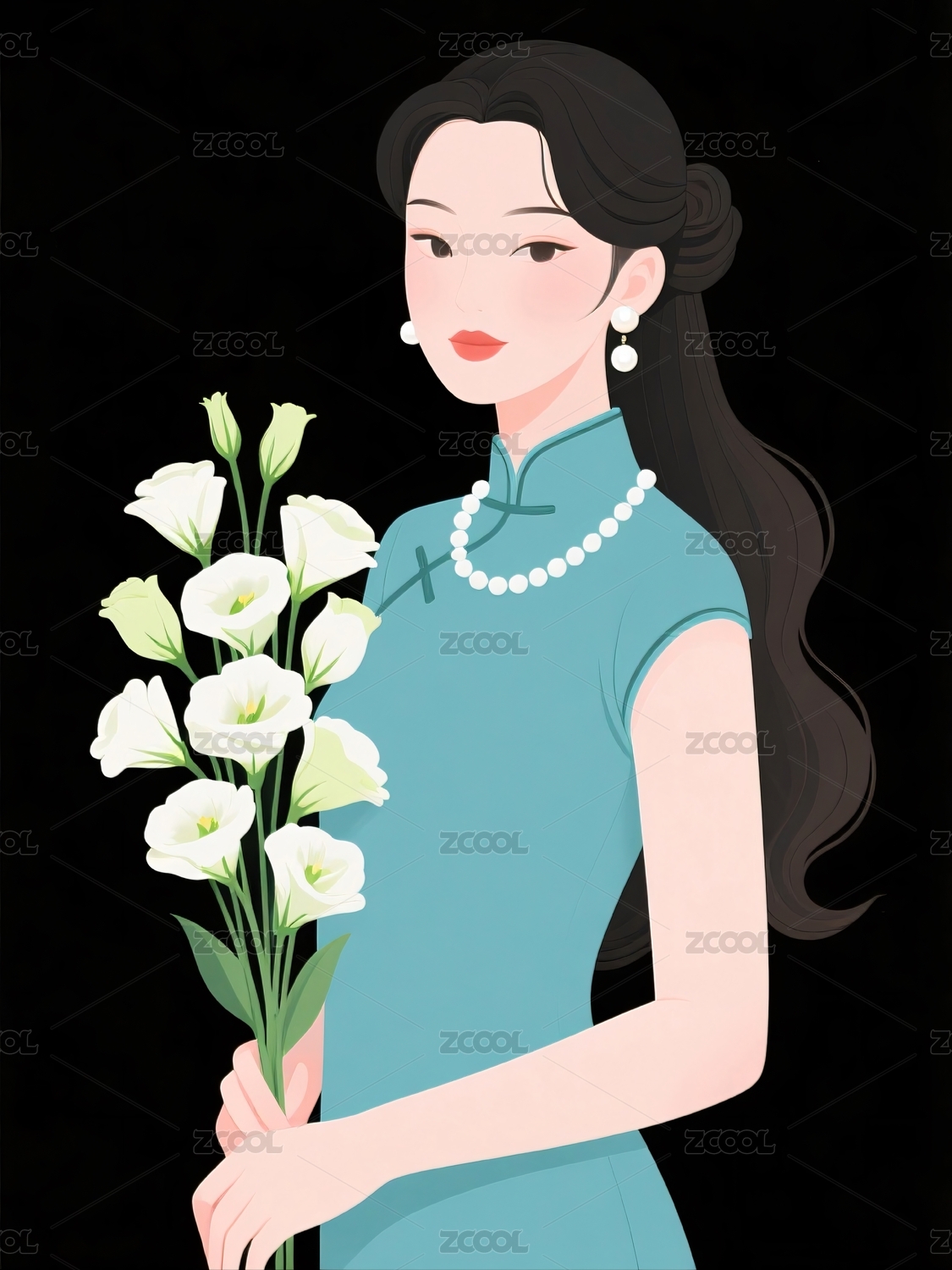 旗袍女子手持鲜花形象