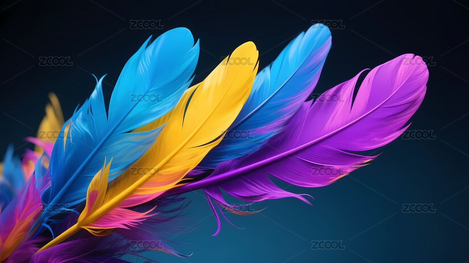彩色羽毛深蓝背景