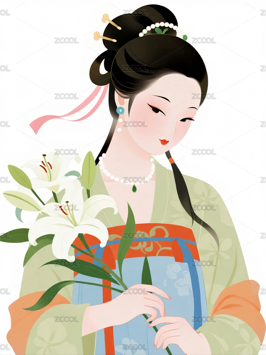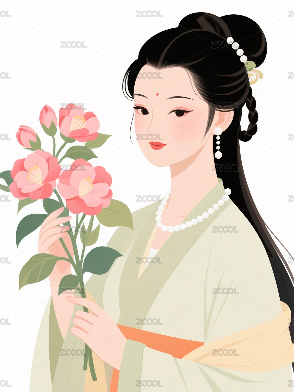 人物,花朵,手臂,装饰,绿色,女子,耳环,长发,眼睛,嘴唇