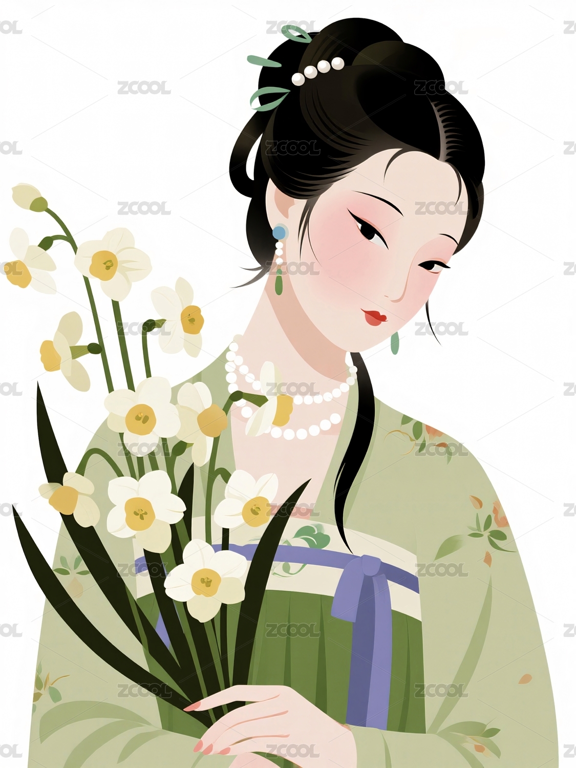 手持百合的古代女子
