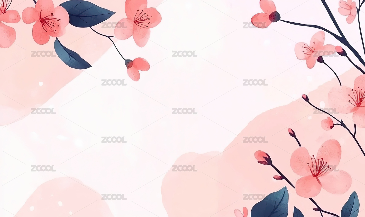 水彩风格粉色樱花花朵枝条