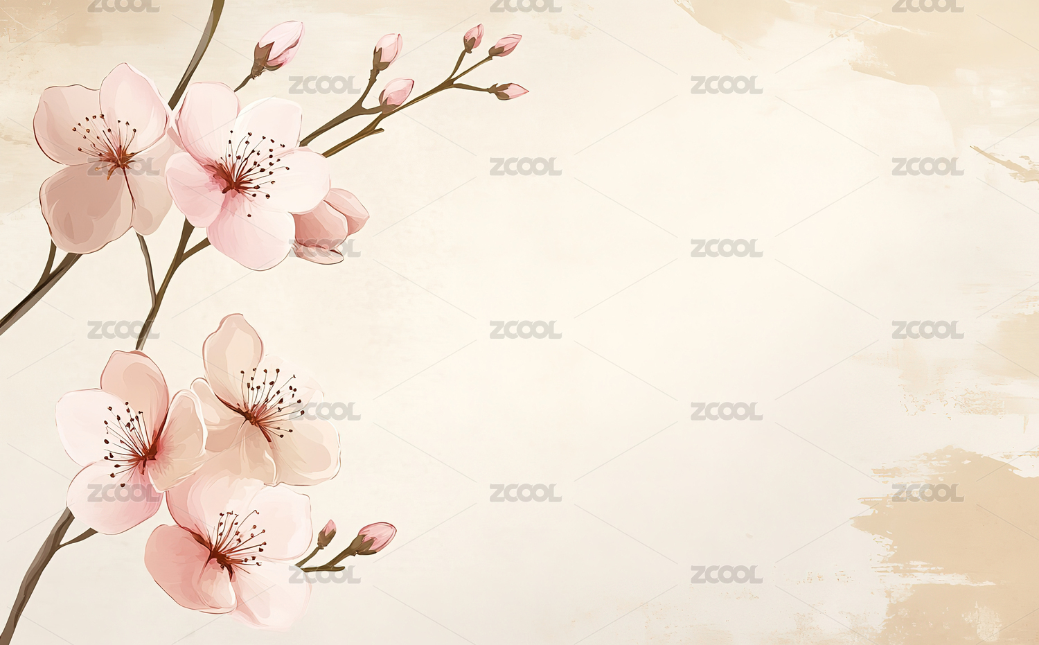 水墨风的樱花枝条设计