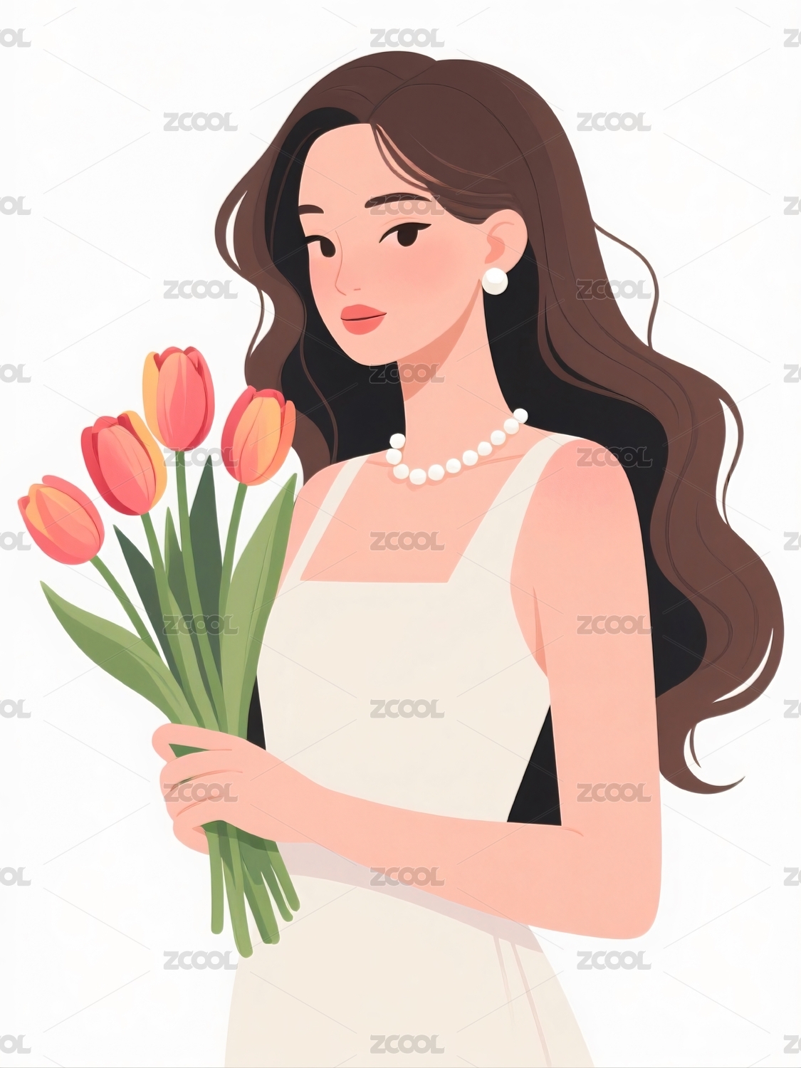 手捧鲜花身穿白裙的女子