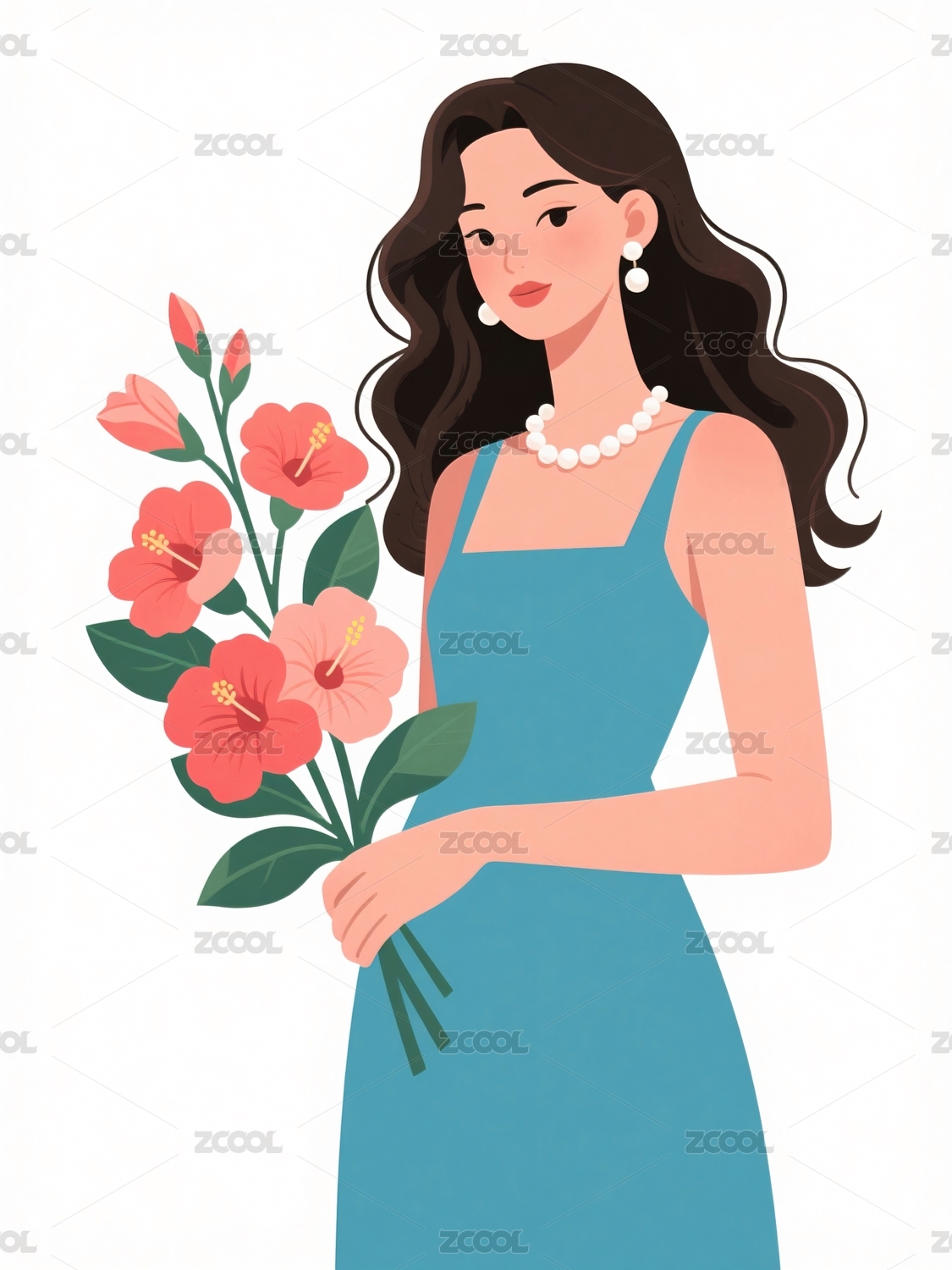 手捧鲜花女士穿着蓝色连衣裙