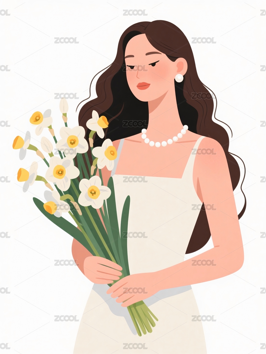 女子手捧鲜花珍珠项链