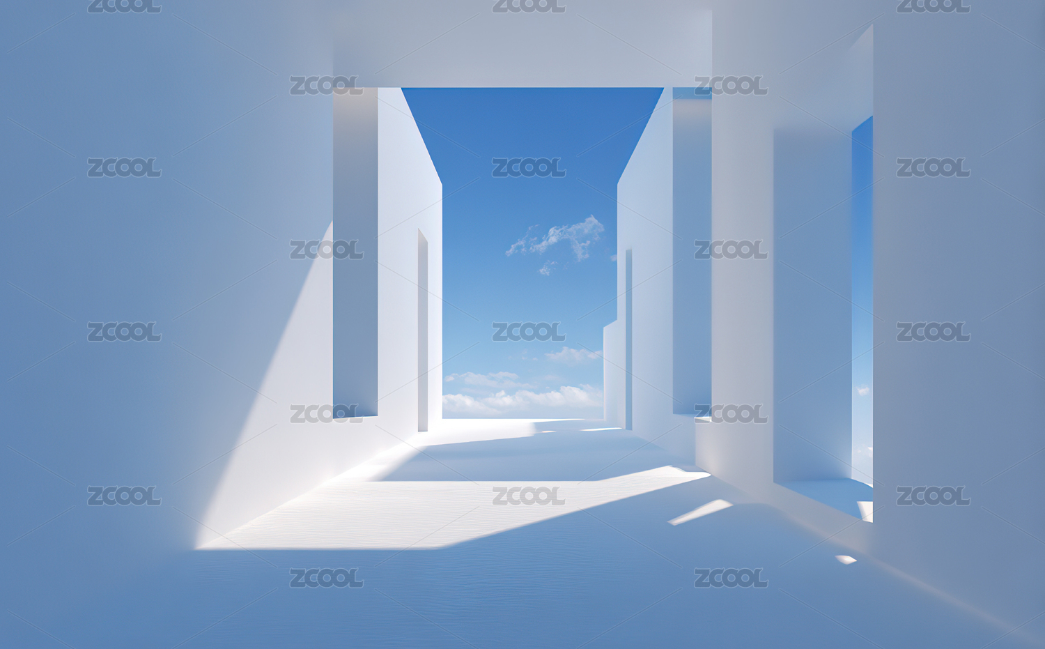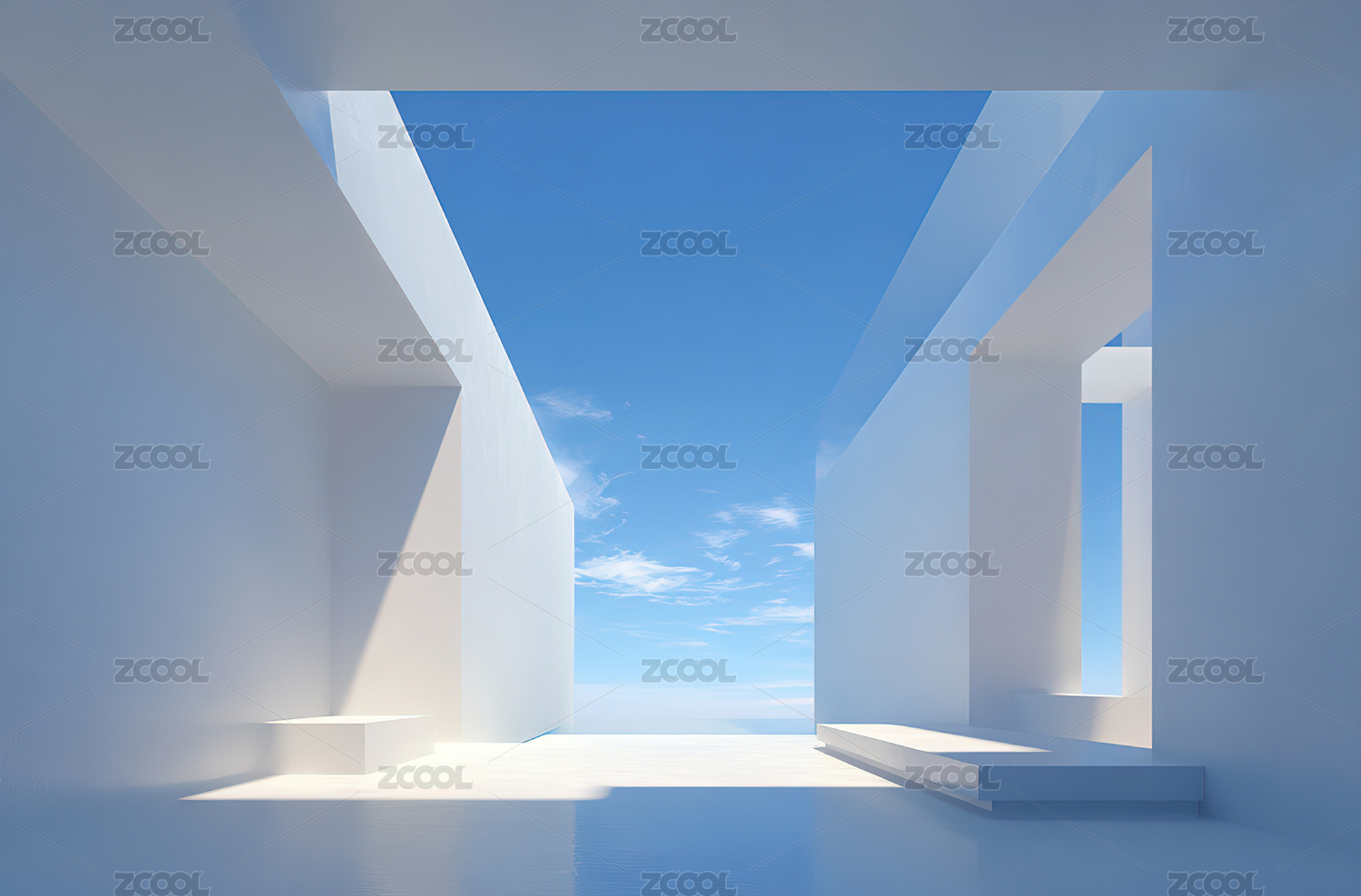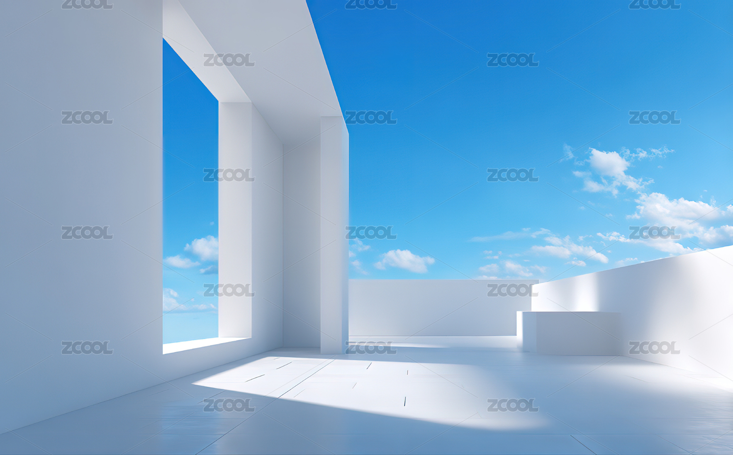 简约白色空间与蓝天