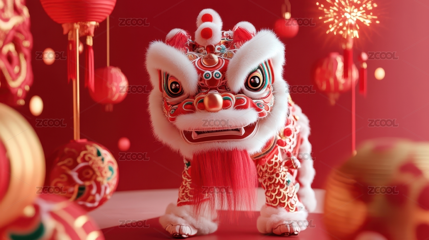 色彩,图案,舞狮,红色,金色,纸屑,传统,装饰,喜庆,民俗