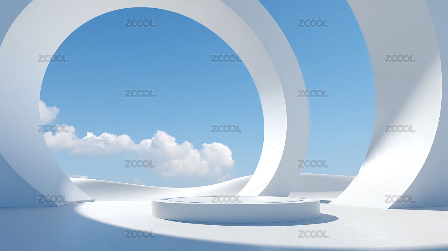 白色圆形拱门与蓝天白云