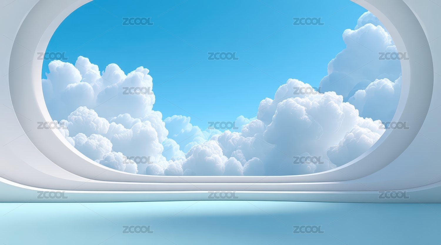 室内透过弧形窗看蓝天