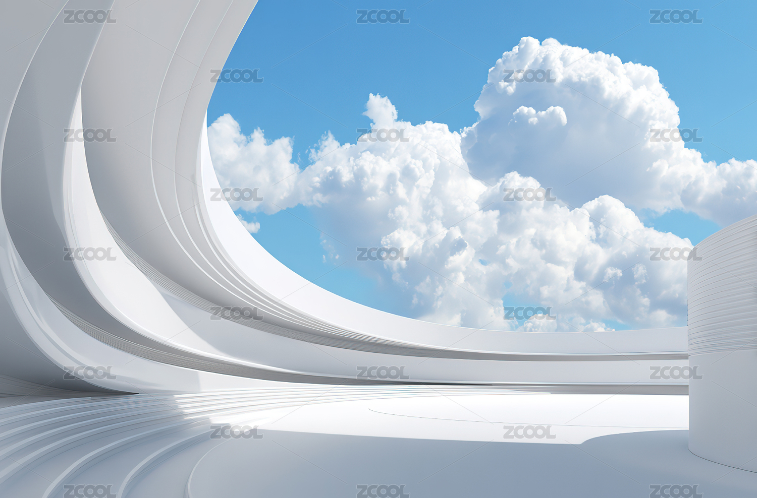 弧形结构下的蓝天白云