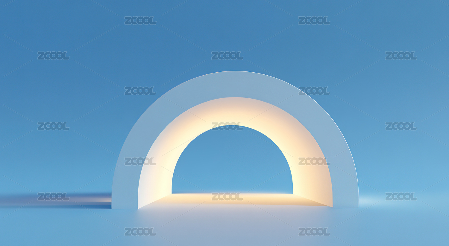 蓝色背景下的发光拱形结构