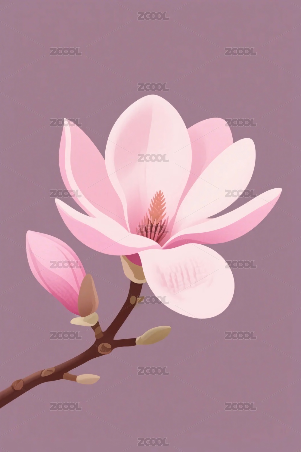 粉色玉兰花枝插画