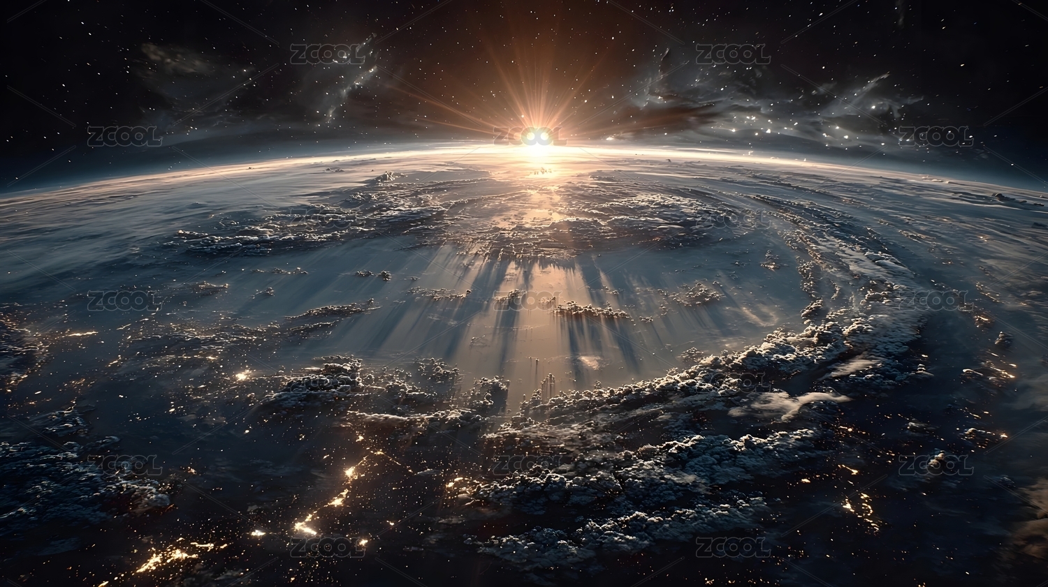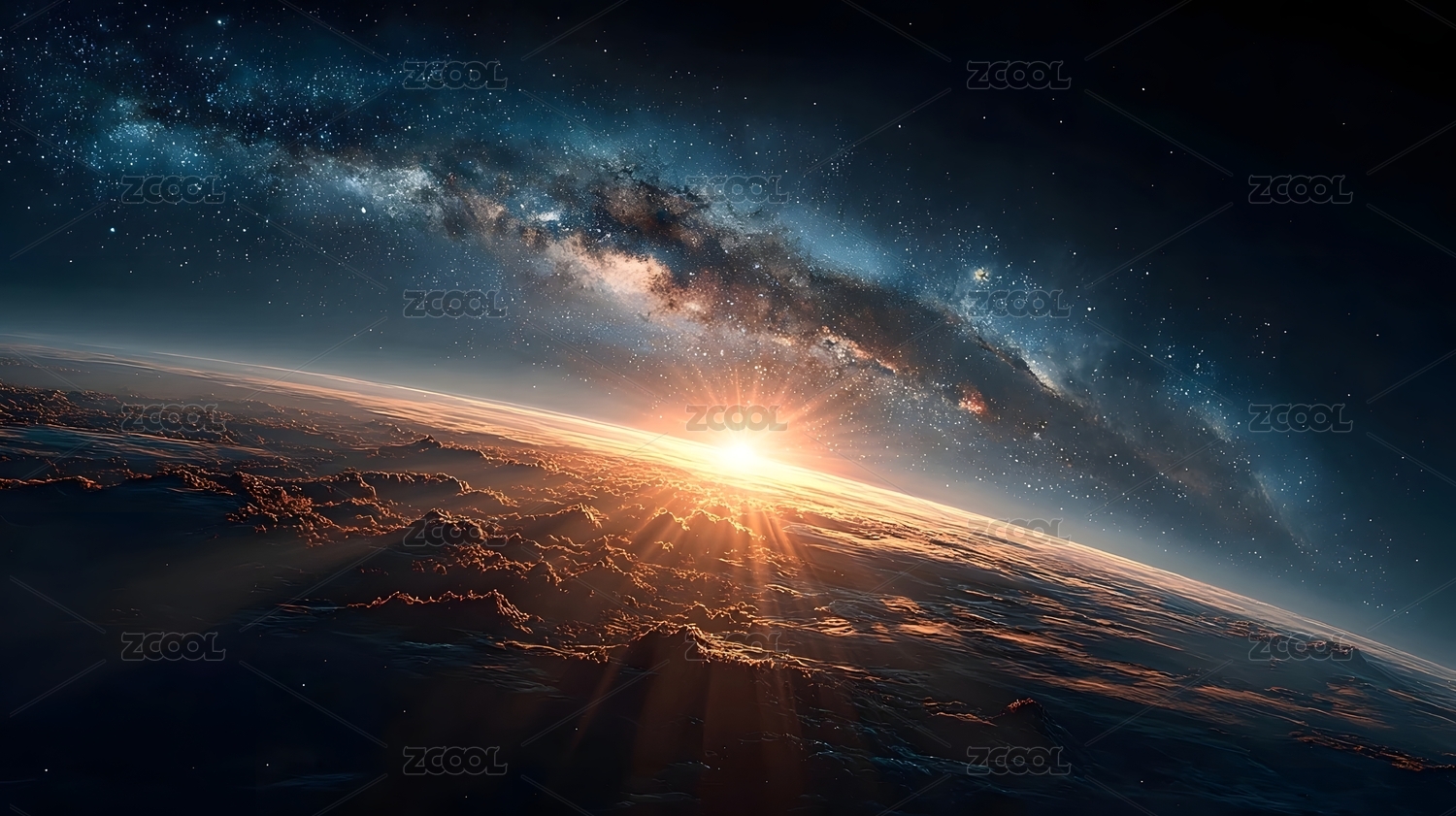 山脉,晨光,日出,晨曦,地球,太空,星系,宇宙,星球,光束