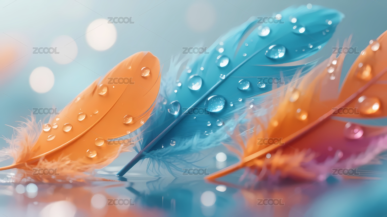 蓝色,清新,橙色,渐变,羽毛,水滴,紫色,晶莹,梦幻,蓝绿