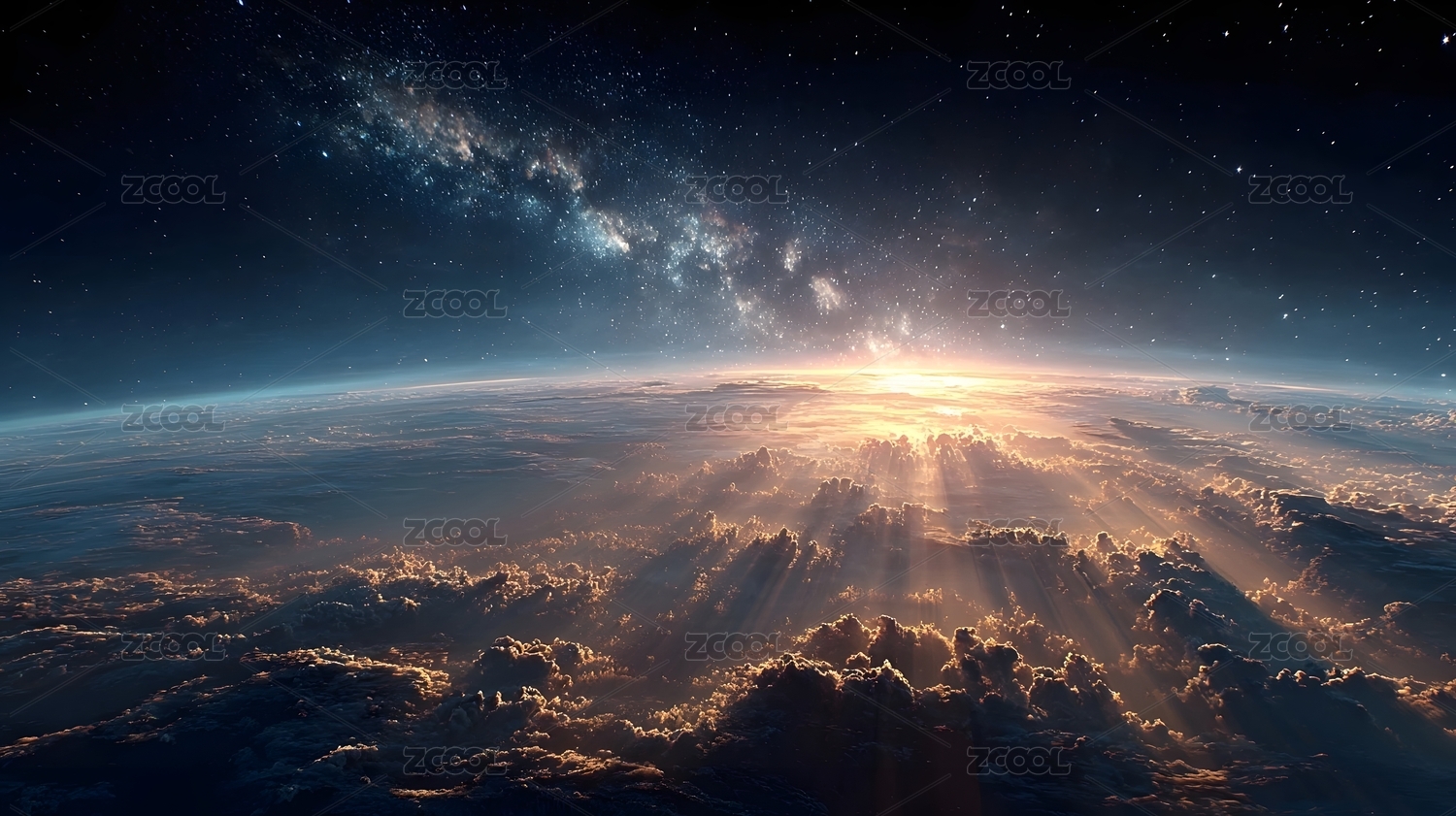 晨光,太阳,日出,云层,地平线,空间,天际,地球,银河,星空