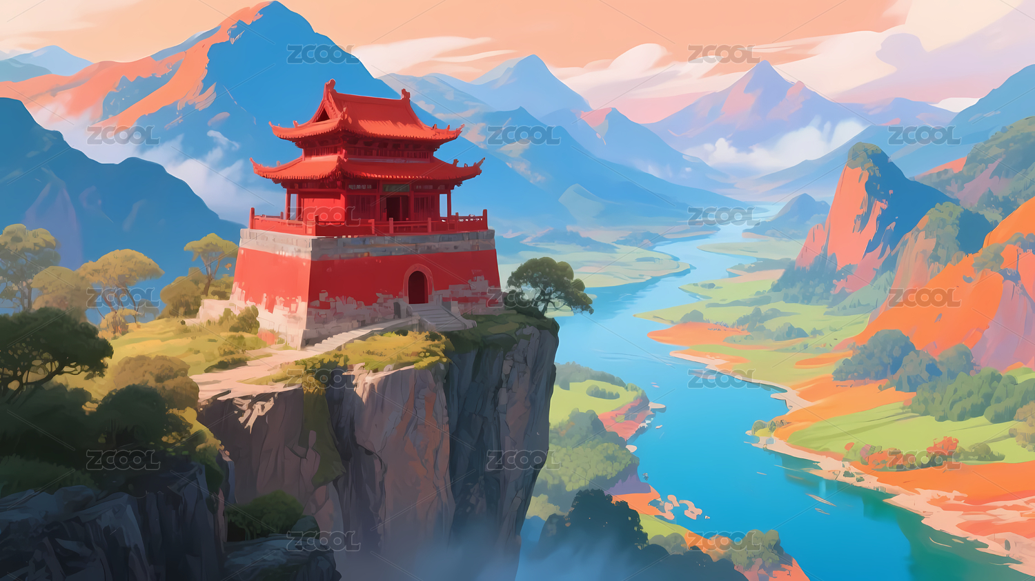 自然, 艺术, 天空, 神秘, 山峰, 建筑, 户外, 历史, 蓝天, 白云