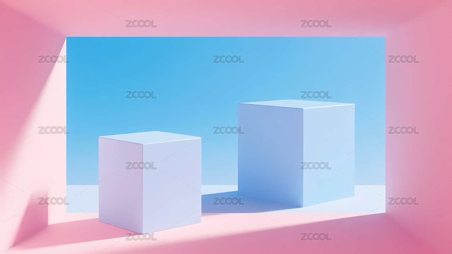 粉色的产品展示台放置在浅蓝色的背景上