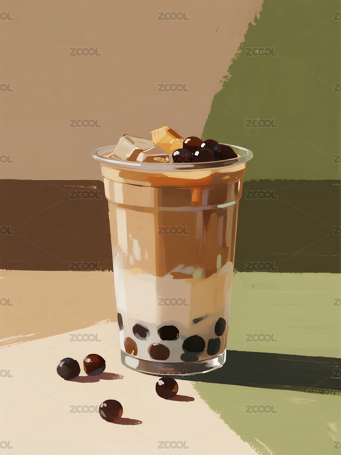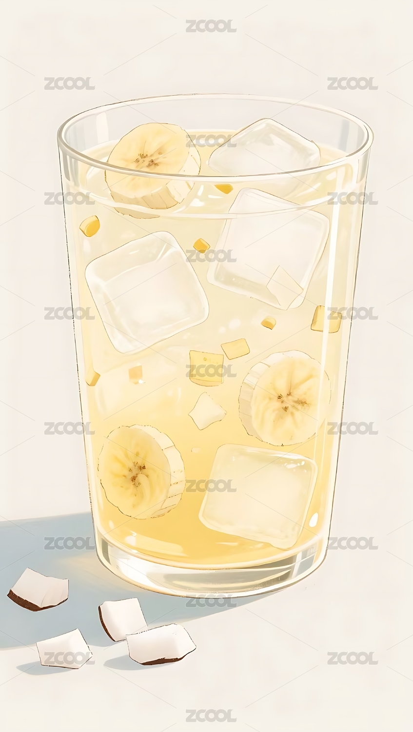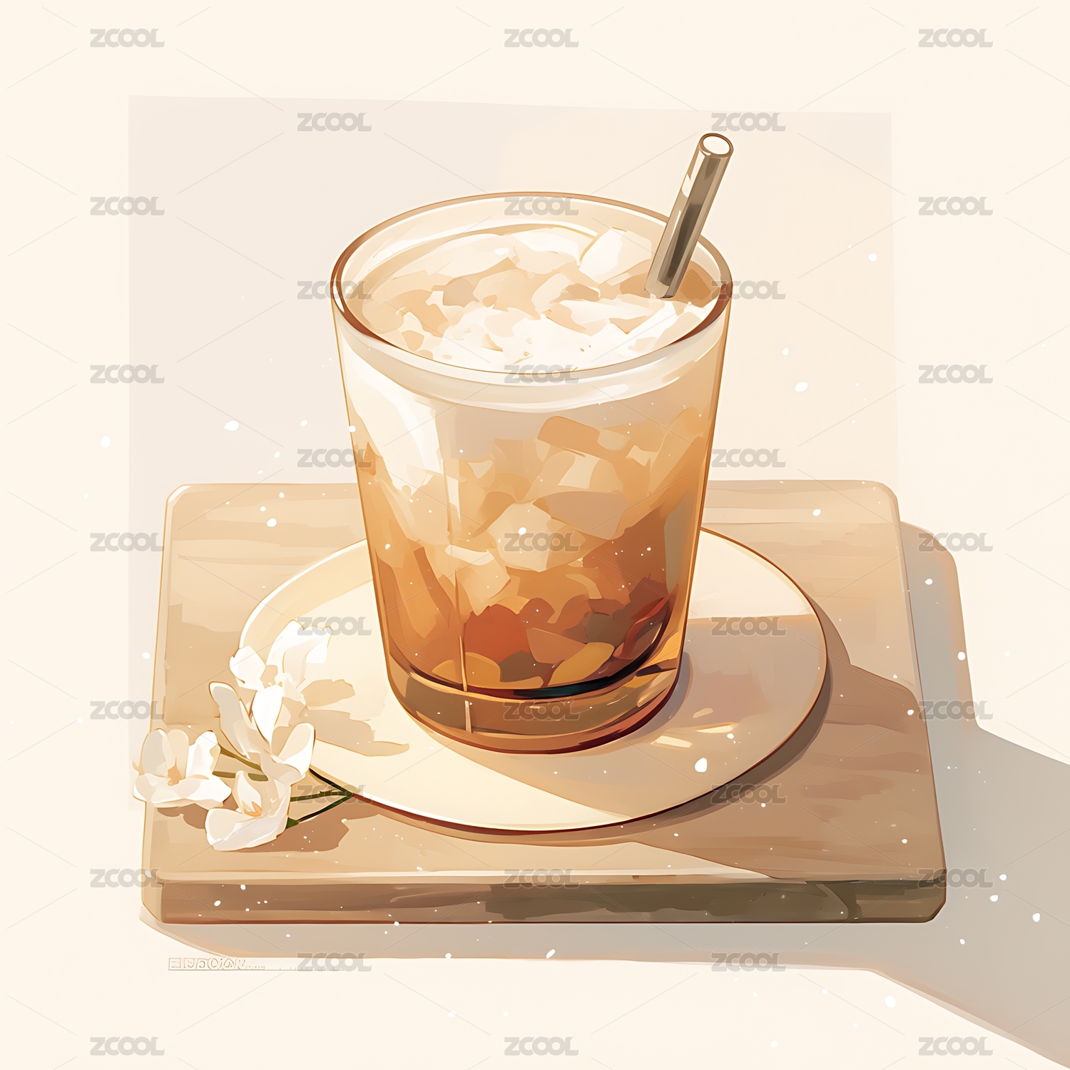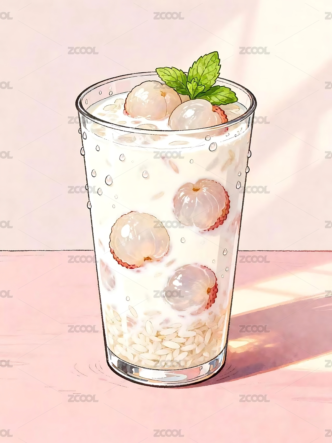 荔枝,米酒,奶饮,插画,冰爽,清甜,玻璃杯,薄荷,水珠,饮品