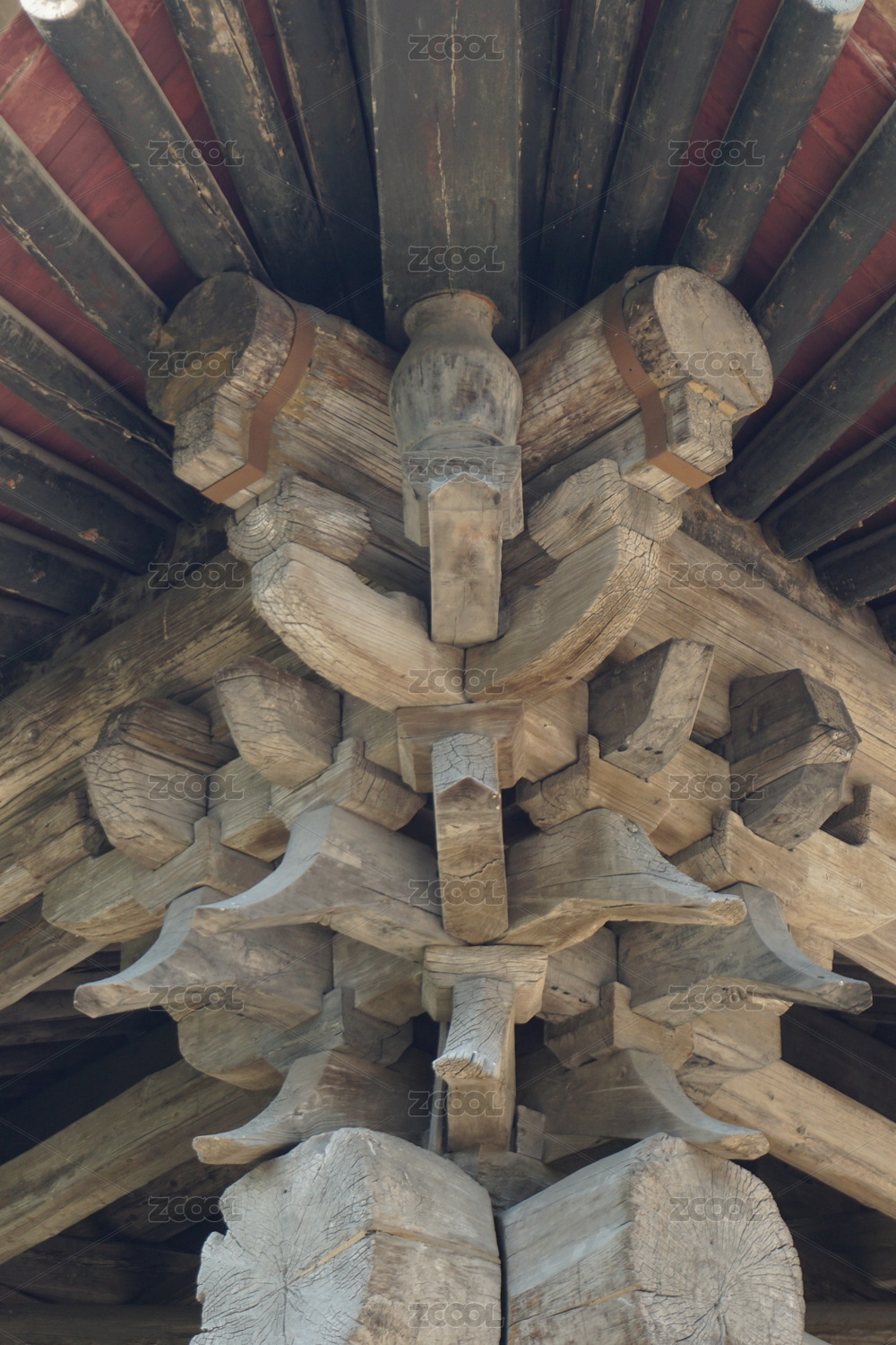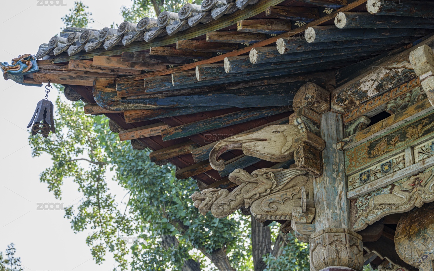 中国山西晋祠古建筑斗拱彩绘雕塑