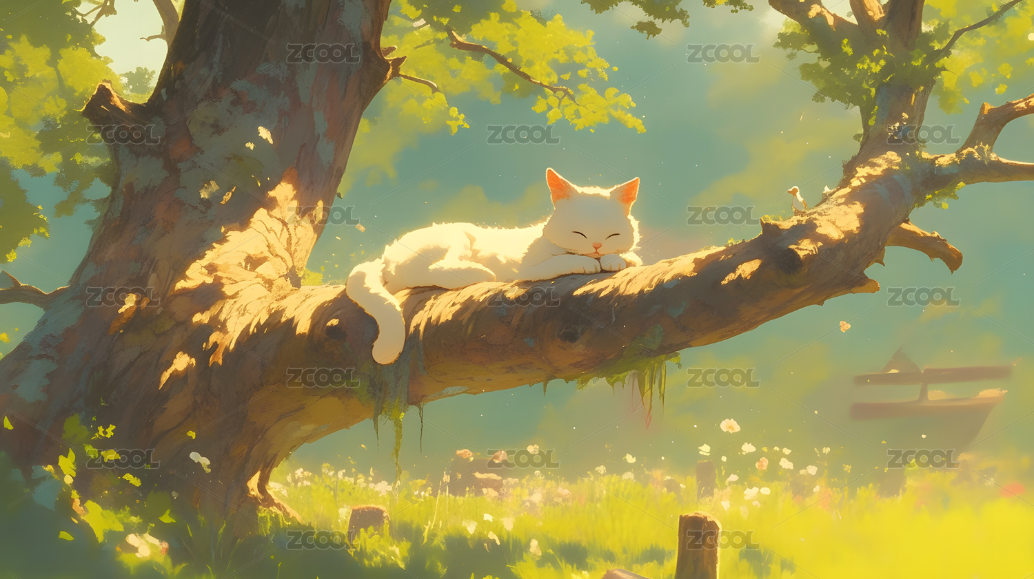 樱花树下的小白猫