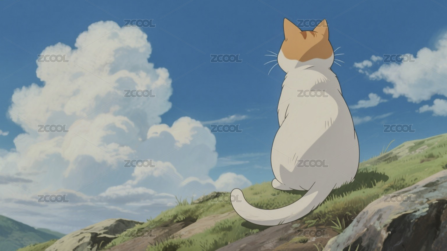 猫,天空,云,剪影,治愈,动漫,壁纸,清新,草地,远眺