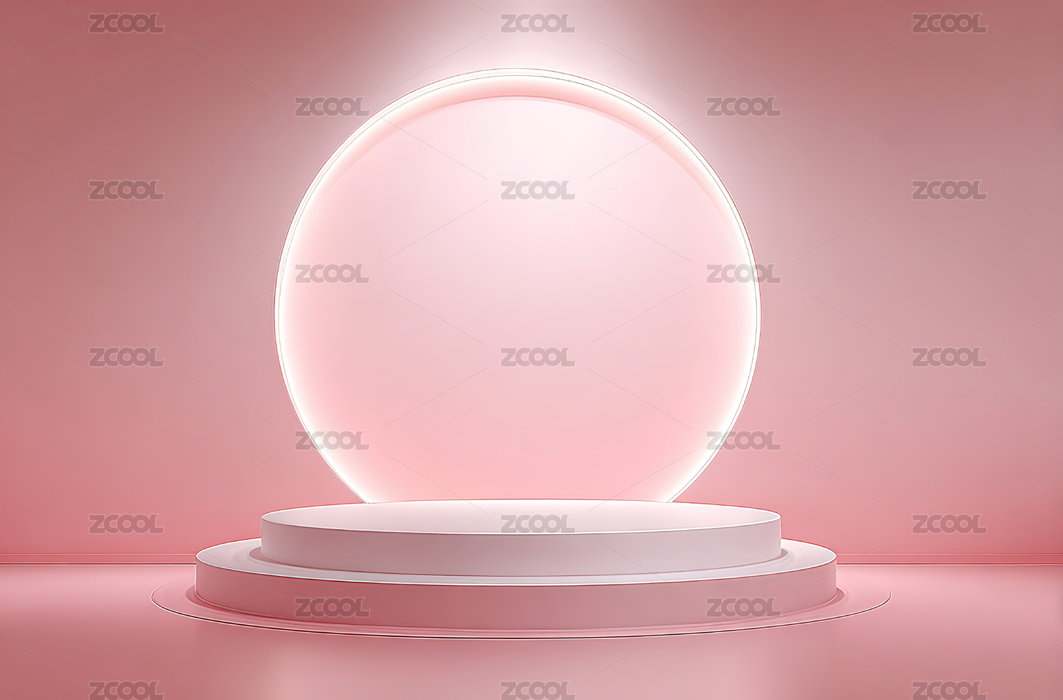 粉色背景下的圆形光环与平台